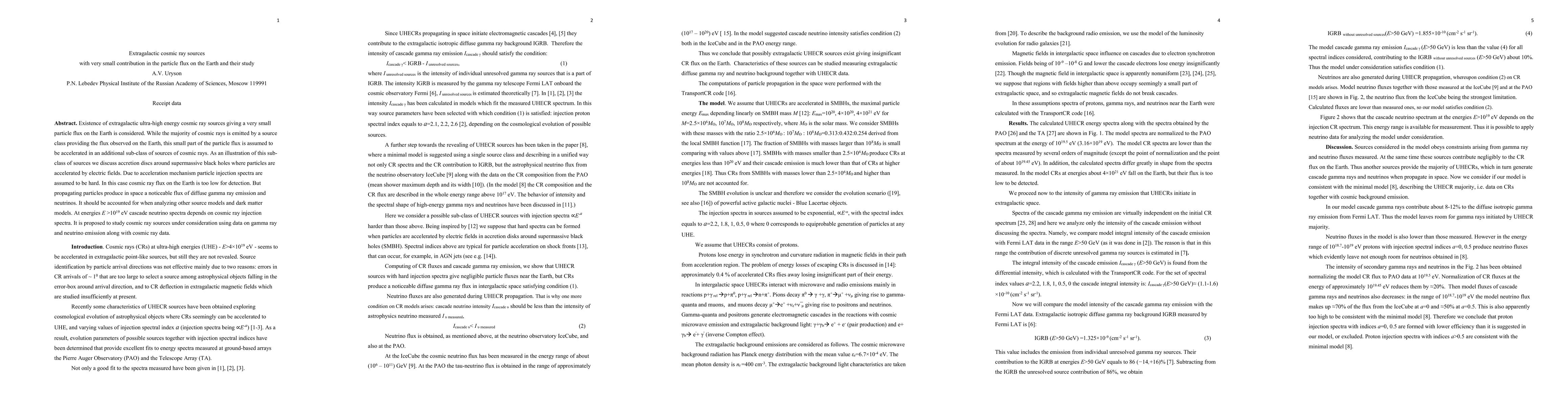 This paper explores potential extragalactic sources of ultra-high energy cosmic rays that contribute minimally to Earth's particle flux, focusing on accretion discs around supermassive black holes. It suggests studying these sources via gamma-ray and neutrino emissions, as their low particle flux makes direct detection difficult.