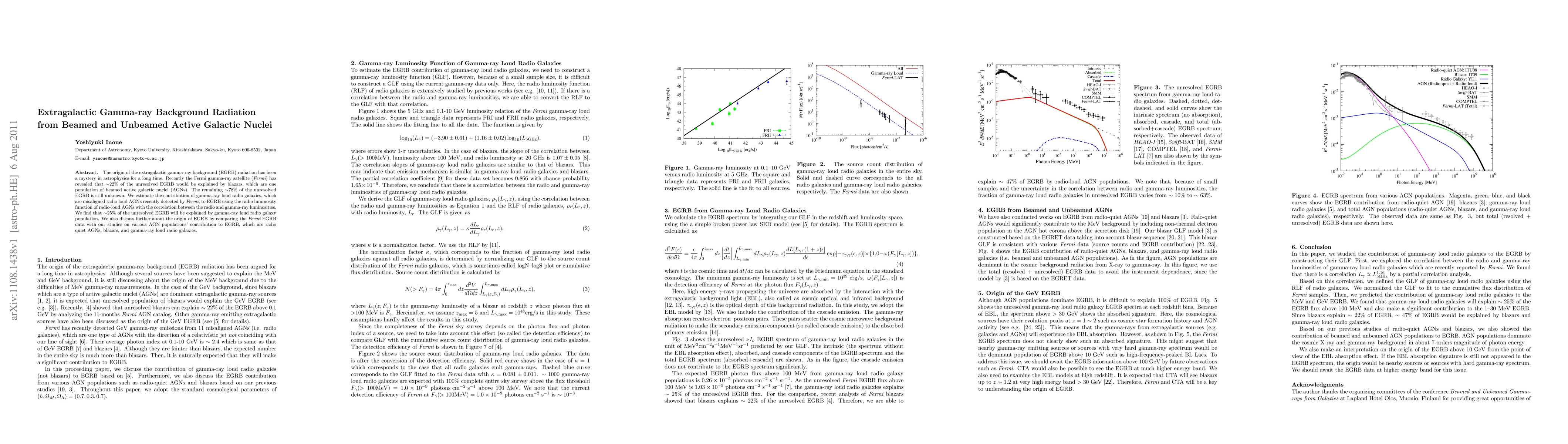 This paper investigates the contribution of gamma-ray loud radio galaxies to the extragalactic gamma-ray background (EGRB), finding they account for ~25% of the unresolved EGRB. The study also highlights that blazars contribute ~22%, leaving ~78% of the EGRB's origin still unexplained.