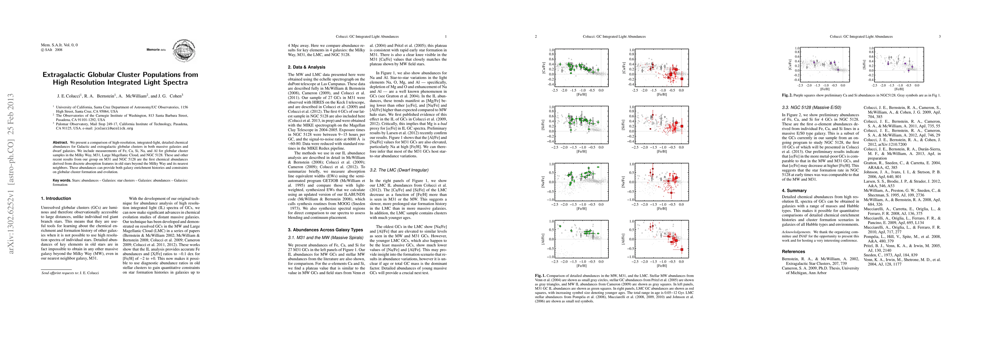 This paper compares high-resolution integrated-light chemical abundances for Galactic and extragalactic globular clusters, revealing Fe, Ca, Si, Na, and Al in clusters from the Milky Way, M31, Large Magellanic Cloud, and NGC 5128. These findings offer insights into galaxy enrichment histories and globular cluster formation and evolution.