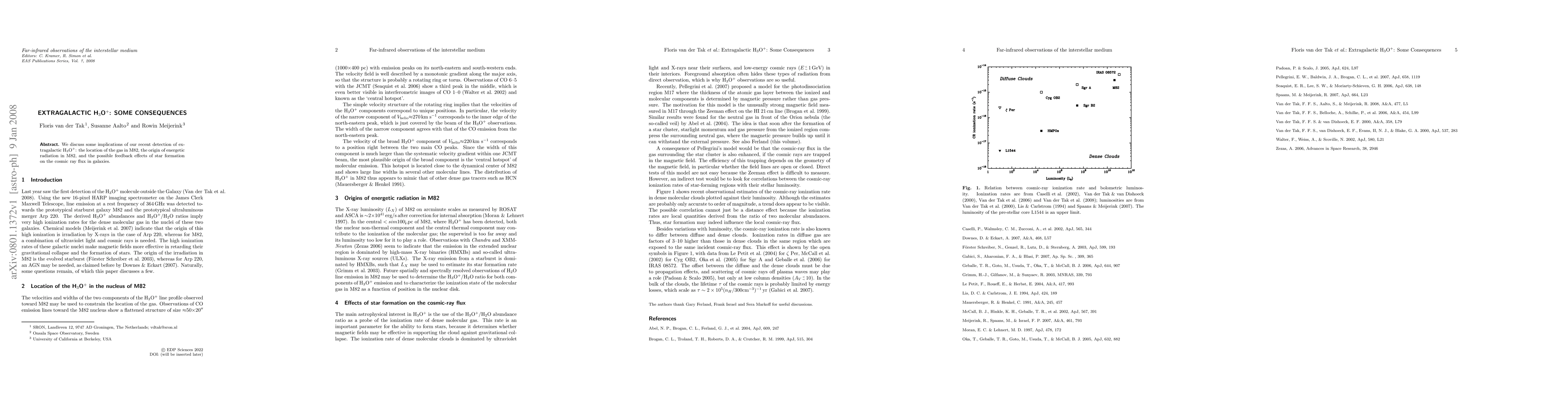 We discuss some implications of our recent detection of extragalactic H3O+: the location of the gas in M82, the origin of energetic radiation in M82, and the possible feedback effects of star formation on the cosmic ray flux in galaxies.