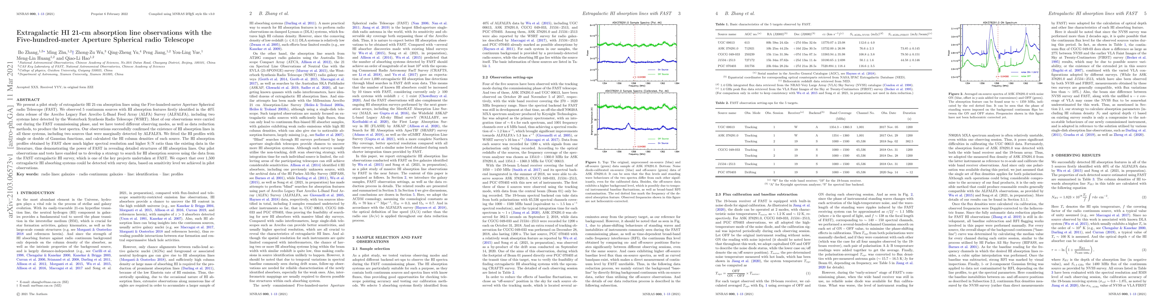 This study uses the Five-hundred-meter Aperture Spherical radio Telescope to detect extragalactic HI 21-cm absorption lines in five continuum sources, revealing detailed structures of HI absorption lines with higher spectral resolution and sensitivity than existing data.