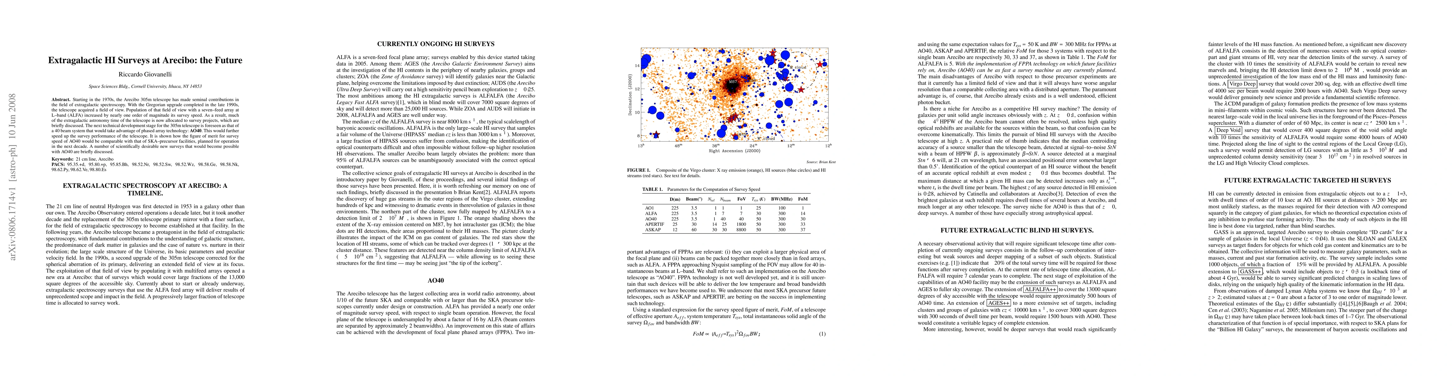 The Arecibo 305m telescope, upgraded with a Gregorian system and ALFA array, has significantly boosted extragalactic HI survey speeds. Future plans include the AO40 phased array system, which promises to further enhance survey capabilities, potentially rivaling upcoming SKA-precursor facilities.
