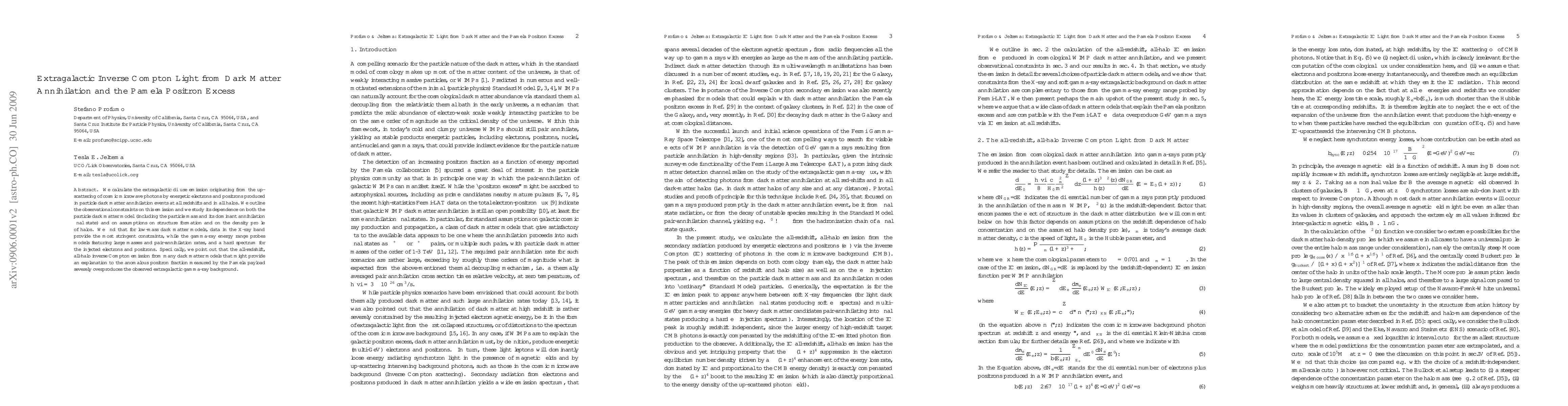 We calculate the extragalactic diffuse emission originating from the up-scattering of cosmic microwave photons by energetic electrons and positrons produced in particle dark matter annihilation events at all redshifts and in all halos. We outline the observational constraints on this emission and we study its dependence on both the particle dark matter model (including the particle mass and its dominant annihilation final state) and on assumptions on structure formation and on the density profile of halos. We find that for low-mass dark matter models, data in the X-ray band provide the most stringent constraints, while the gamma-ray energy range probes models featuring large masses and pair-annihilation rates, and a hard spectrum for the injected electrons and positrons. Specifically, we point out that the all-redshift, all-halo inverse Compton emission from many dark matter models that might provide an explanation to the anomalous positron fraction measured by the Pamela payload severely overproduces the observed extragalactic gamma-ray background.