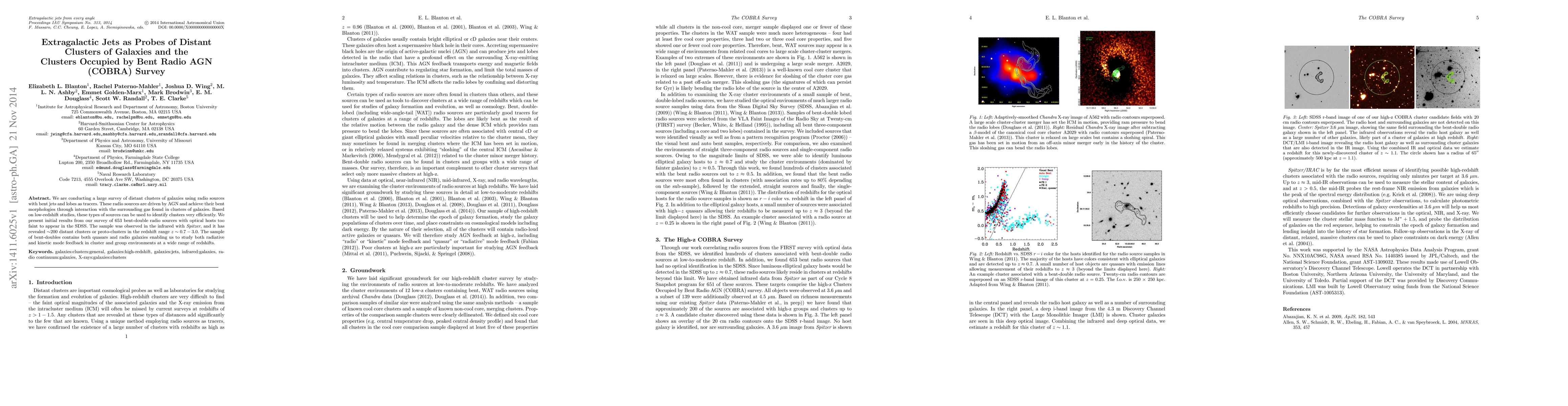 This paper presents the COBRA Survey, which uses bent-double radio sources driven by AGN to identify distant clusters of galaxies. Initial results reveal approximately 200 clusters or proto-clusters in the redshift range $z\sim0.7 - 3.0$, providing insights into radiative and kinetic mode feedback across diverse cluster environments.