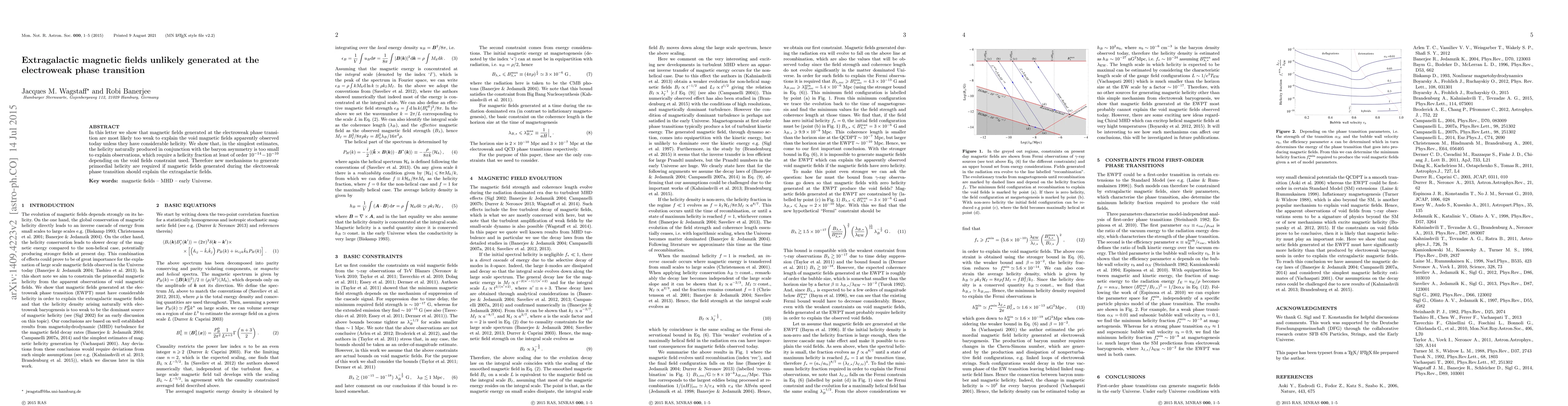 This paper argues that magnetic fields generated during the electroweak phase transition are too weak to account for the observed extragalactic magnetic fields unless they possess significant helicity. The study finds that the naturally occurring helicity accompanying the baryon asymmetry is insufficient, necessitating a new mechanism to generate primordial helicity.