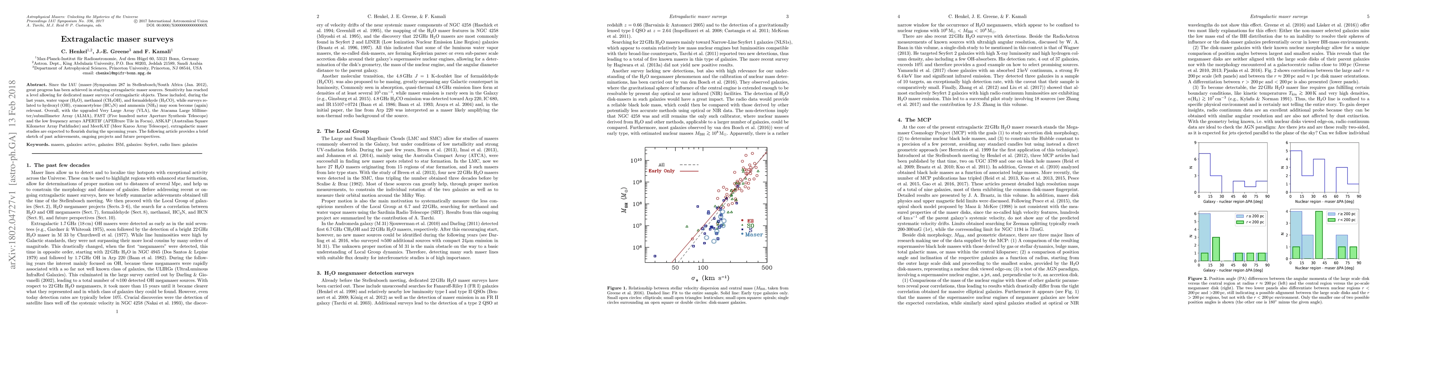 Since the IAU (maser-)Symposium 287 in Stellenbosch/South Africa (Jan. 2012), great progress has been achieved in studying extragalactic maser sources. Sensitivity has reached a level allowing for dedicated maser surveys of extragalactic objects. These included, during the last years, water vapor (H2O), methanol (CH3OH), and formaldehyde (H2CO), while surveys related to hydroxyl (OH), cyanoacetylene (HC3N) and ammonia (NH3) may soon become (again) relevant. Overall, with the upgraded Very Large Array (VLA), the Atacama Large Millimeter/submillimeter Array (ALMA), FAST (Five hundred meter Aperture Synthesis Telescope) and the low frequency arrays APERTIF (APERture Tile in Focus), ASKAP (Australian Square Kilometer Array Pathfinder) and MeerKAT (Meer Karoo Array Telescope), extragalactic maser studies are expected to flourish during the upcoming years. The following article provides a brief sketch of past achievements, ongoing projects and future perspectives.