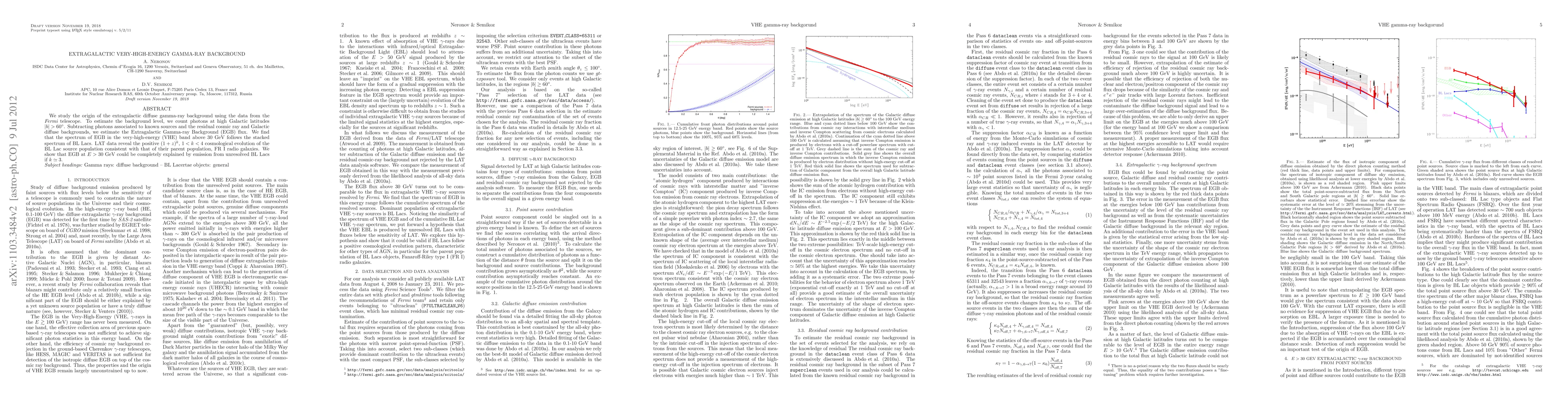 This study uses Fermi telescope data to analyze the extragalactic diffuse gamma-ray background, finding that the very-high-energy gamma-ray spectrum above 30 GeV aligns with the stacked spectrum of BL Lacs. The research concludes that the extragalactic gamma-ray background at energies greater than 30 GeV can be fully explained by unresolved BL Lacs with a cosmological evolution parameter k~3.