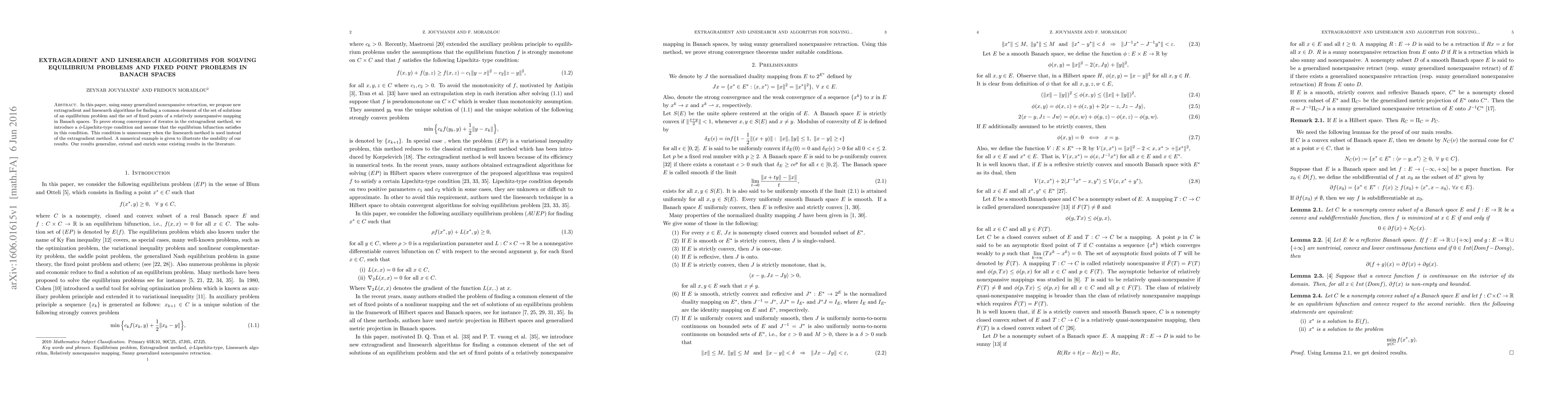 In this paper, using sunny generalized nonexpansive retraction, we propose new extragradient and linesearch algorithms for finding a common element of the set of solutions of an equilibrium problem and the set of fixed points of a relatively nonexpansive mapping in Banach spaces. To prove strong convergence of iterates in the extragradient method, we introduce a $\phi$-Lipschitz-type condition and assume that the equilibrium bifunction satisfies in this condition. This condition is unnecessary when the linesearch method is used instead of the extragradient method. A numerical example is given to illustrate the usability of our results. Our results generalize, extend and enrich some existing results in the literature.