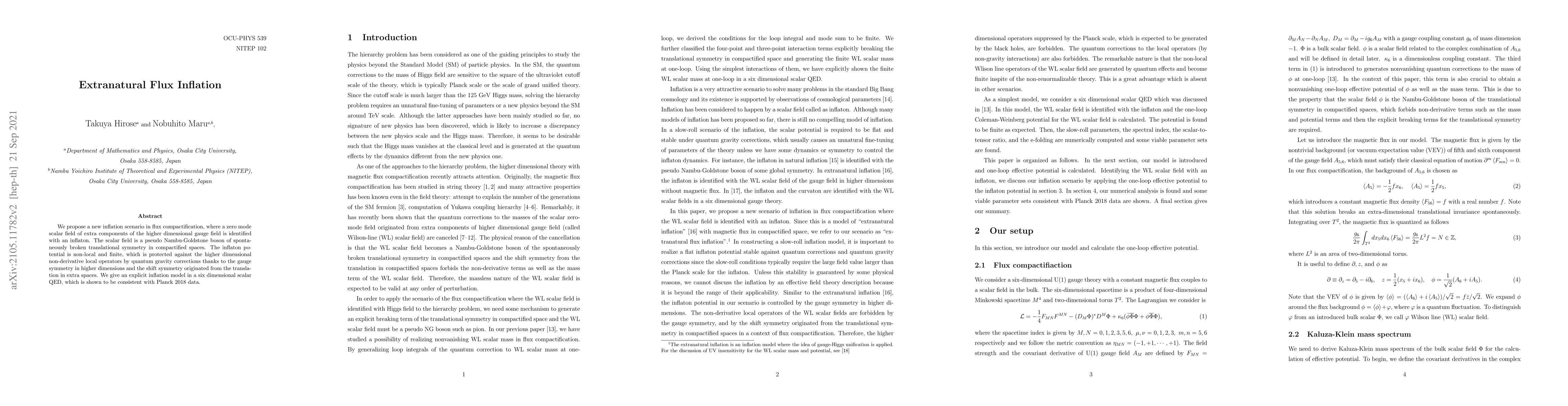 This paper introduces a new inflation model based on flux compactification, where the inflaton is a zero mode scalar from extra dimensions of gauge fields. The inflaton potential is non-local and finite, protected by quantum gravity corrections and gauge symmetry, and is consistent with observational data from Planck 2018.