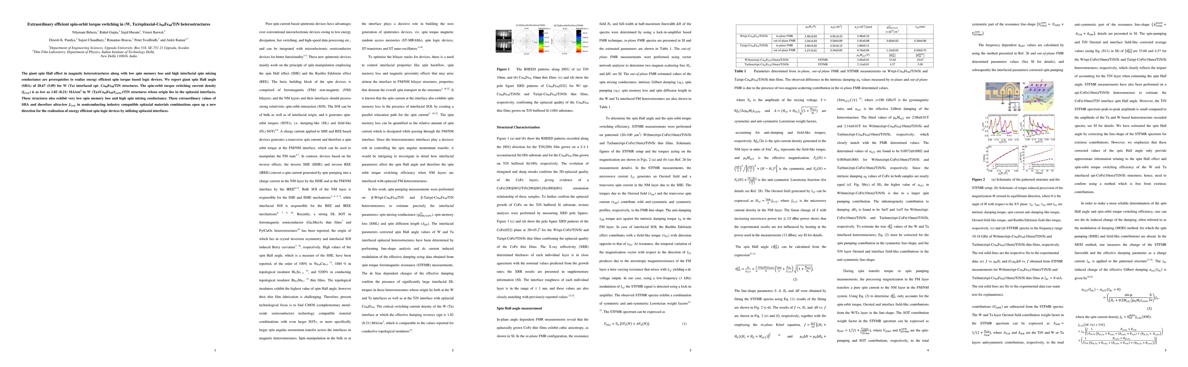 This paper reports exceptionally efficient spin-orbit torque switching in W (Ta)/epitaxial-Co60Fe40/TiN heterostructures, characterized by a giant spin Hall angle and ultra-low switching current density due to optimized epitaxial interfaces, promising energy-efficient spin logic devices.