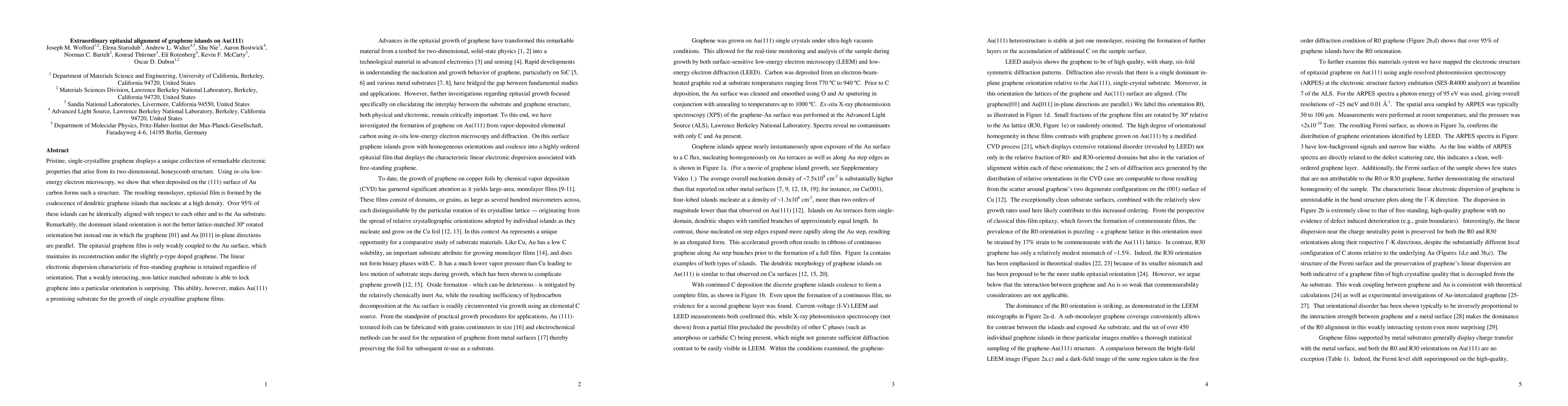 Researchers used low-energy electron microscopy to study graphene islands on Au(111) and found that 95% of the islands were identically aligned with respect to each other and the substrate, defying expectations.