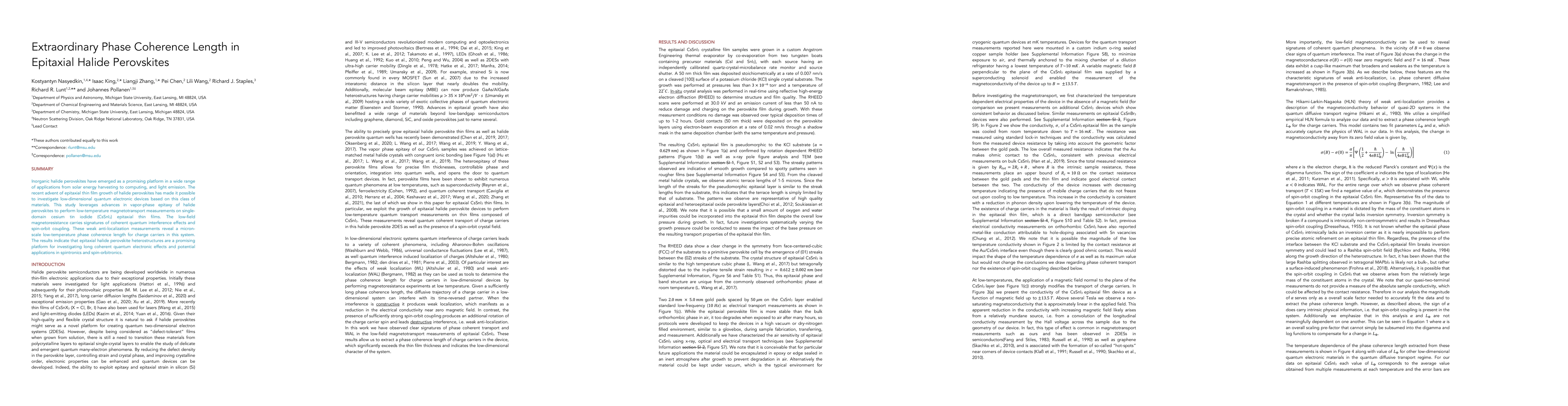 This study reveals a micron-scale phase coherence length in epitaxial cesium tin iodide thin films, demonstrating coherent quantum interference effects at low temperatures. These findings suggest that halide perovskite heterostructures are promising for exploring long-range quantum electronic phenomena and potential spintronics applications.