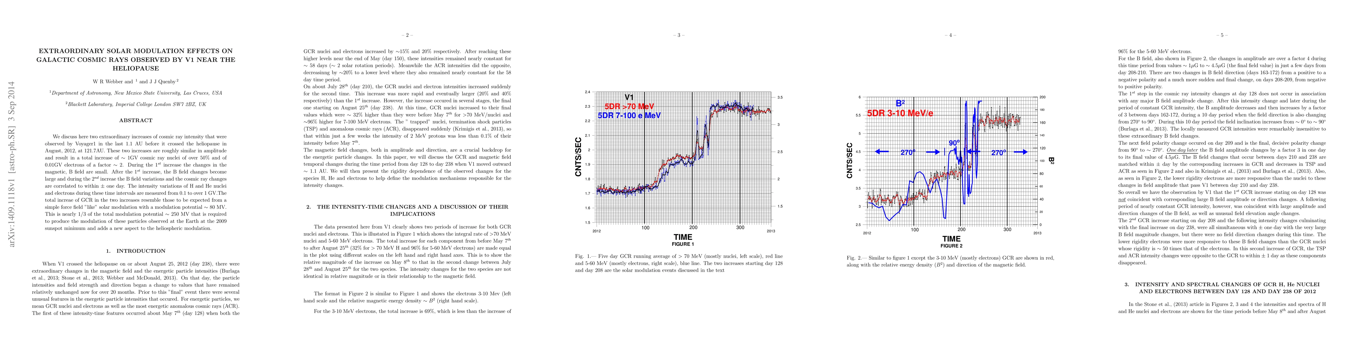 We discuss two extraordinary increases of cosmic ray intensity observed by Voyager 1 in the last 1.1 AU before heliopause crossing, Aug 2012 at 121.7 AU. The two increases are roughly similar in amplitude and result in a total increase of cosmic ray nuclei around 1 GV of over 50 percent and of 0.01 GV electrons of a factor about 2. During the first increase, the changes in the magnetic, B, field are small. After the first increase, the B field variations and cosmic ray changes become large and during the second increase the B field variations and the cosmic ray changes are correlated to within a day. The intensity variations of H and He nuclei during these time intervals are measured from 0.1 to over 1 GV. The total GCR increse over the two events resemble those expected from a simple force-field 'like' solar modulation model with a modulation potential of about 80MV. This is nearly one third of the total modulation potential of about 250 GV required to produce the modulation of these particles observed at the earth at the 2009 sunspot minimum and adds a new aspect to ideas about heliospheric modulation.