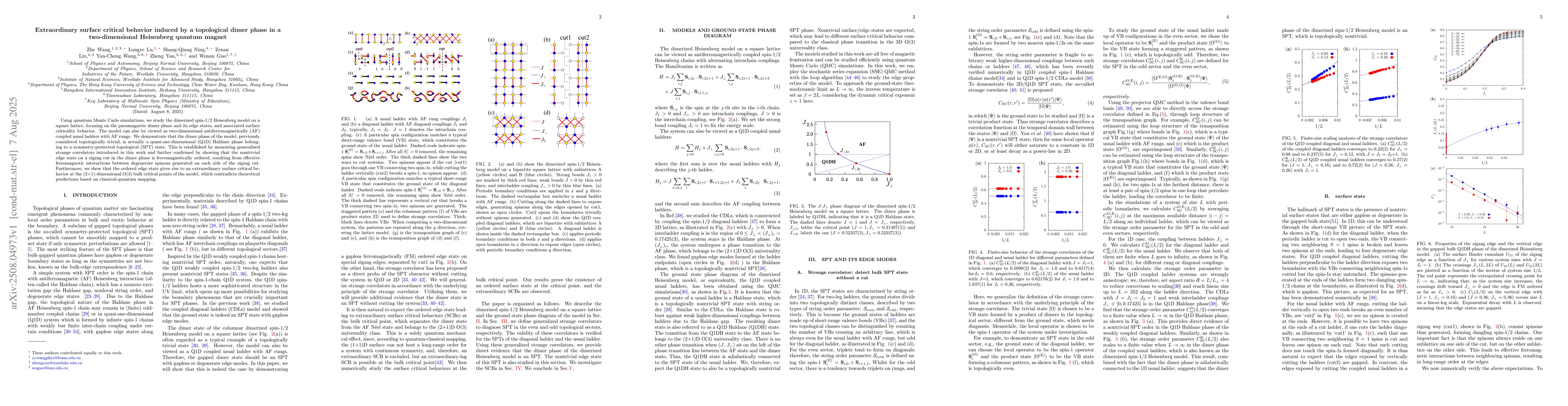 Using quantum Monte Carlo simulations, we study the dimerized spin-1/2 Heisenberg model on a square lattice, focusing on the paramagnetic dimer phase and its edge states, and associated surface criticality behavior. The model can also be viewed as two-dimensional antiferromagnetically (AF) coupled usual ladders with AF rungs. We demonstrate that the dimer phase of the model, previously considered topologically trivial, is actually a quasi-one-dimensional (Q1D) Haldane phase belonging to a symmetry-protected topological (SPT) state. This is established by measuring generalized strange correlators introduced in this work and further confirmed by showing that the nontrivial edge state on a zigzag cut in the dimer phase is ferromagnetically ordered, resulting from effective ferromagnetic interactions between degenerate spinons generated on each side of the zigzag cut. Furthermore, we show that the ordered edge state gives rise to an extraordinary surface critical behavior at the (2+1)-dimensional O(3) bulk critical points of the model, which contradicts theoretical predictions based on classical-quantum mapping.