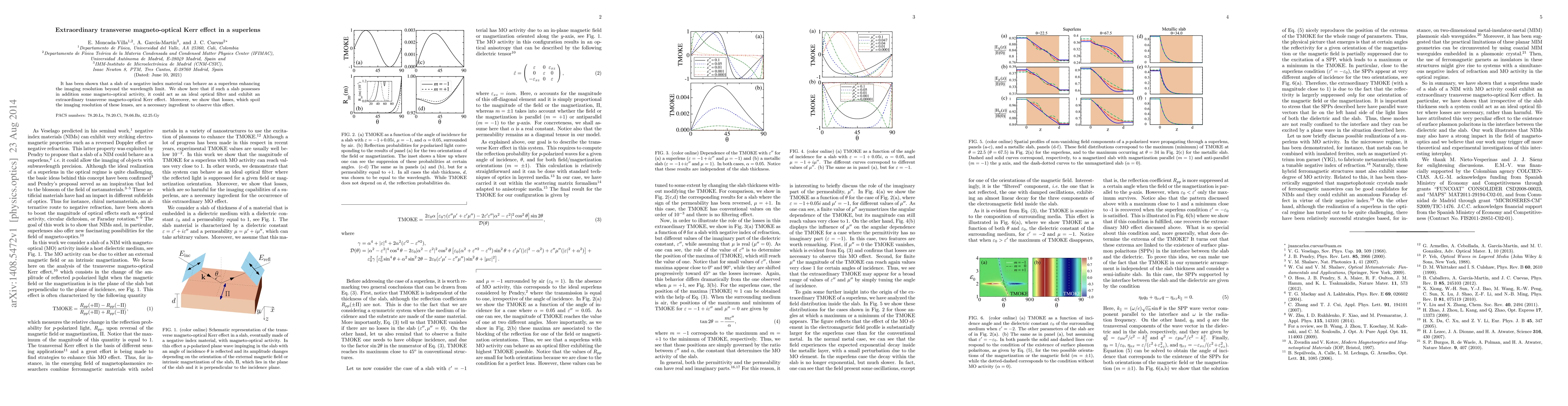 This paper demonstrates that a negative index material with magneto-optical properties can act as a superlens, surpassing traditional imaging resolution limits, and exhibit an extraordinary transverse magneto-optical Kerr effect, with losses playing a crucial role in observing this phenomenon.