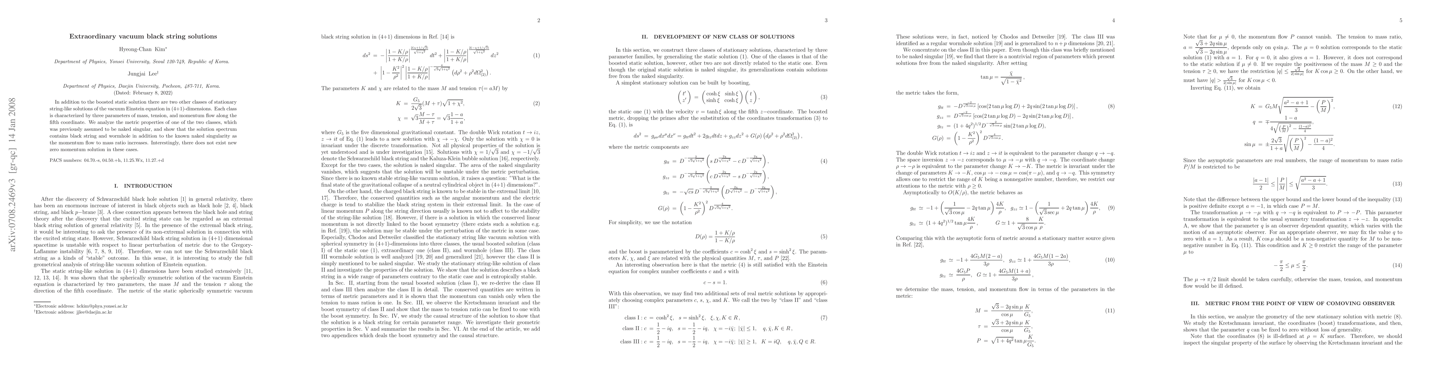 Researchers discovered new stationary string-like solutions in vacuum Einstein equation physics, including black strings and wormholes that appear as momentum flow increases.