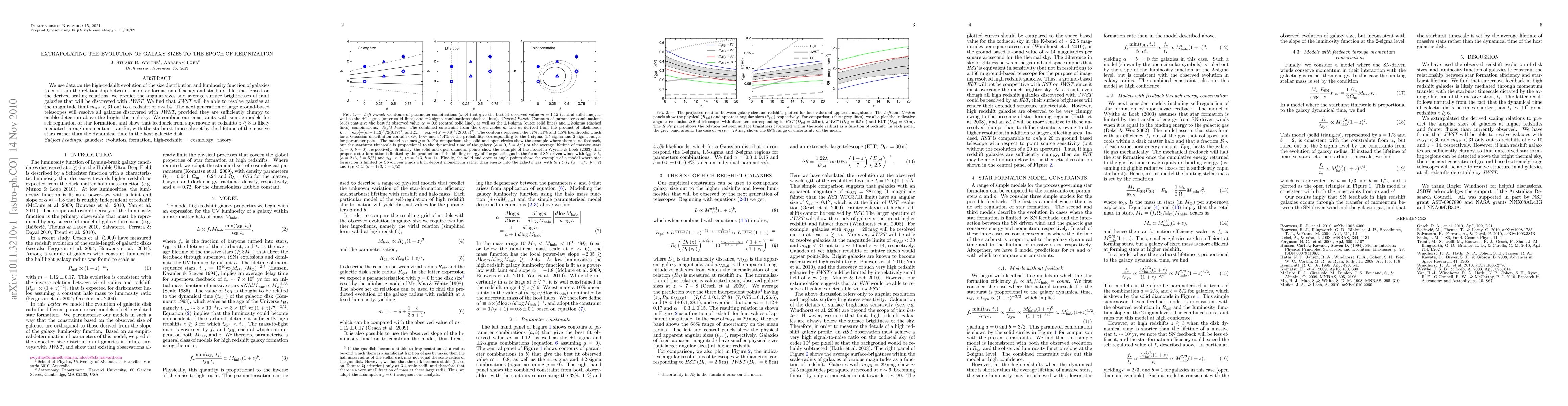 We use data on the high-redshift evolution of the size distribution and luminosity function of galaxies to constrain the relationship between their star formation efficiency and starburst lifetime. Based on the derived scaling relations, we predict the angular sizes and average surface brightnesses of faint galaxies that will be discovered with JWST. We find that JWST will be able to resolve galaxies at the magnitude limit m<31 out to a redshift of z~14. The next generation of large ground-based telescopes will resolve all galaxies discovered with JWST, provided they are sufficiently clumpy to enable detection above the bright thermal sky. We combine our constraints with simple models for self regulation of star formation, and show that feedback from supernovae at redshifts z>3 is likely mediated through momentum transfer, with the starburst timescale set by the lifetime of the massive stars rather than the dynamical time in the host galactic disk.