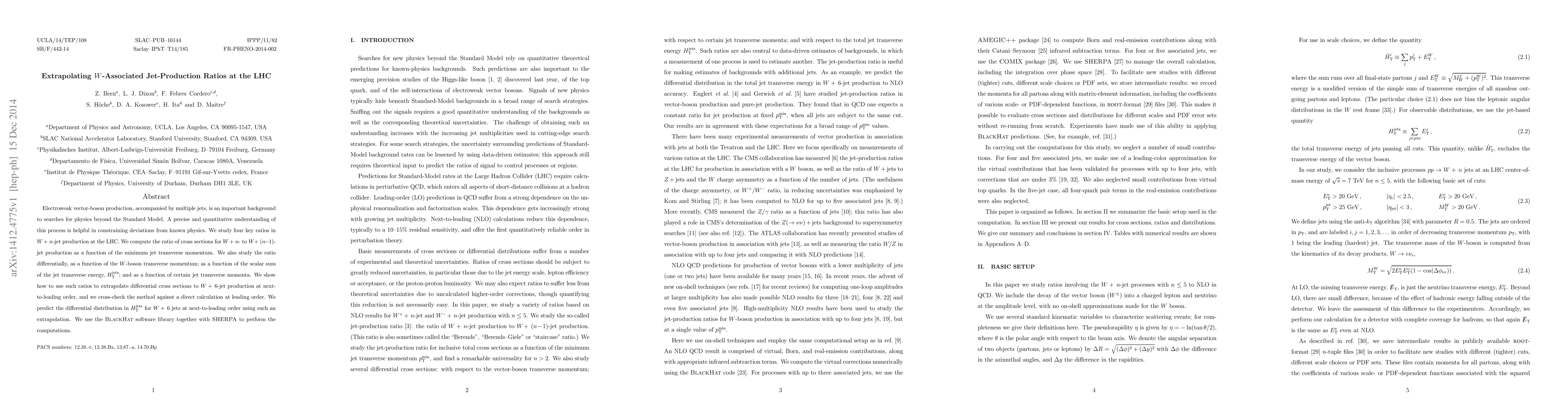 This paper investigates key ratios in $W + n$-jet production at the LHC to understand electroweak vector-boson production, which serves as a background for physics beyond the Standard Model. The authors extrapolate differential cross sections to $W+6$-jet production using these ratios and validate their method against direct calculations.