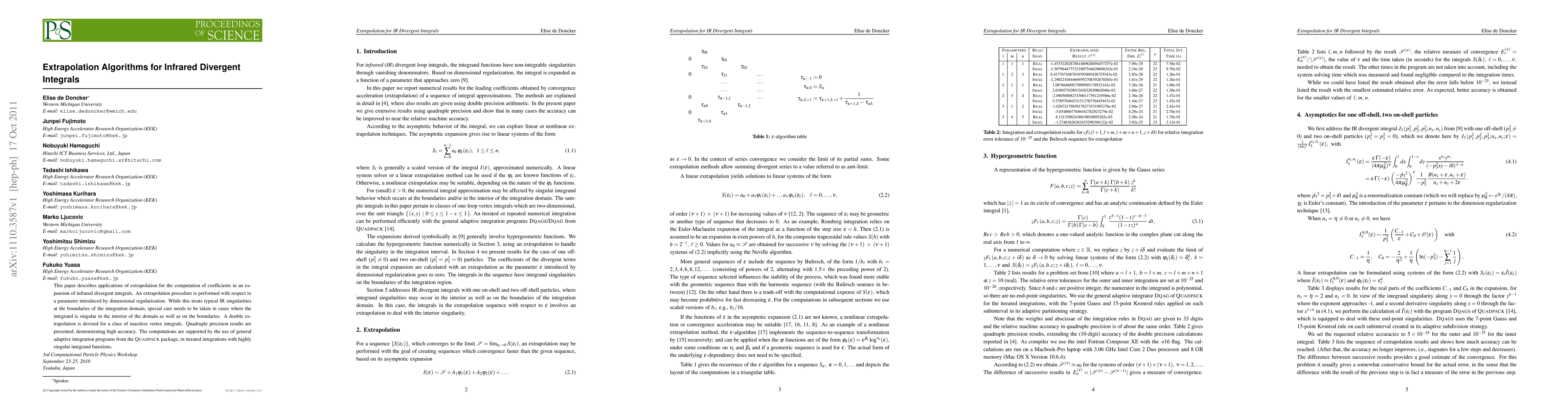 This paper develops extrapolation algorithms for computing coefficients in expansions of infrared divergent integrals, employing dimensional regularization. It introduces a double extrapolation method for handling both interior and boundary singularities in massless vertex integrals, demonstrating high accuracy with quadruple precision results.