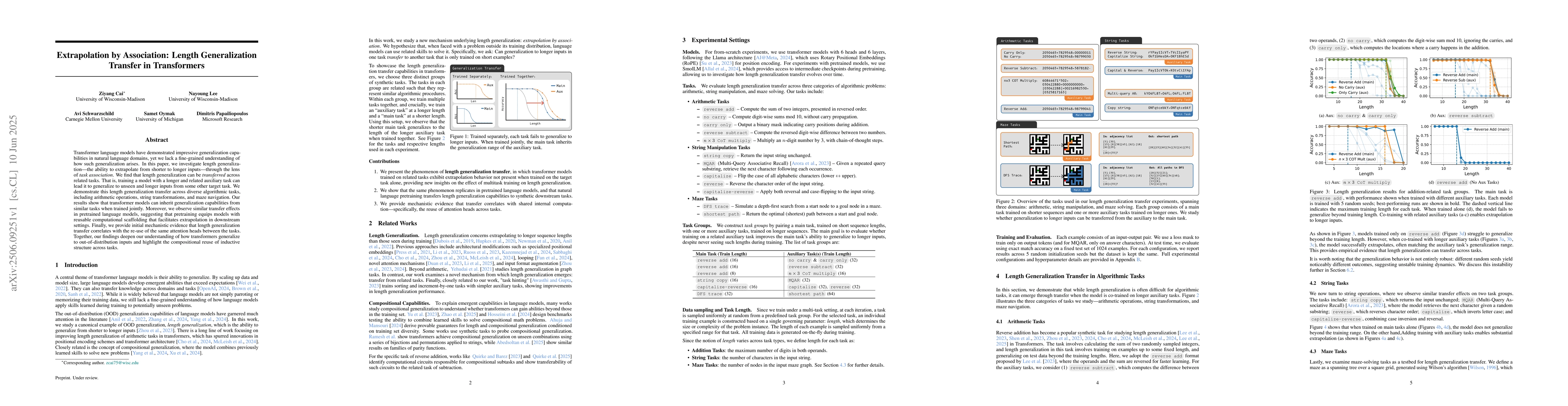 Researchers found that transformer models can generalize to longer inputs when trained on related tasks and that this effect can also be transferred to pre-trained language models, which suggests a reusable computational scaffolding for extrapolation.