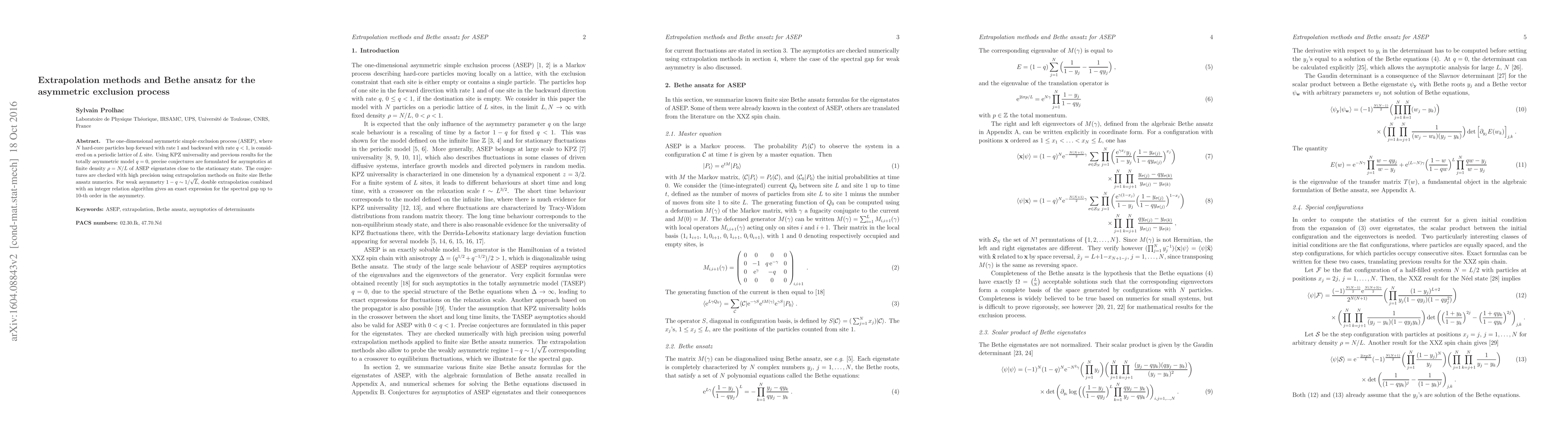 This paper formulates precise conjectures for the asymptotic behavior of the one-dimensional asymmetric simple exclusion process (ASEP) using KPZ universality and Bethe ansatz methods. High-precision numerical results confirm these conjectures, and an exact expression for the spectral gap is derived using double extrapolation and an integer relation algorithm for weak asymmetry.