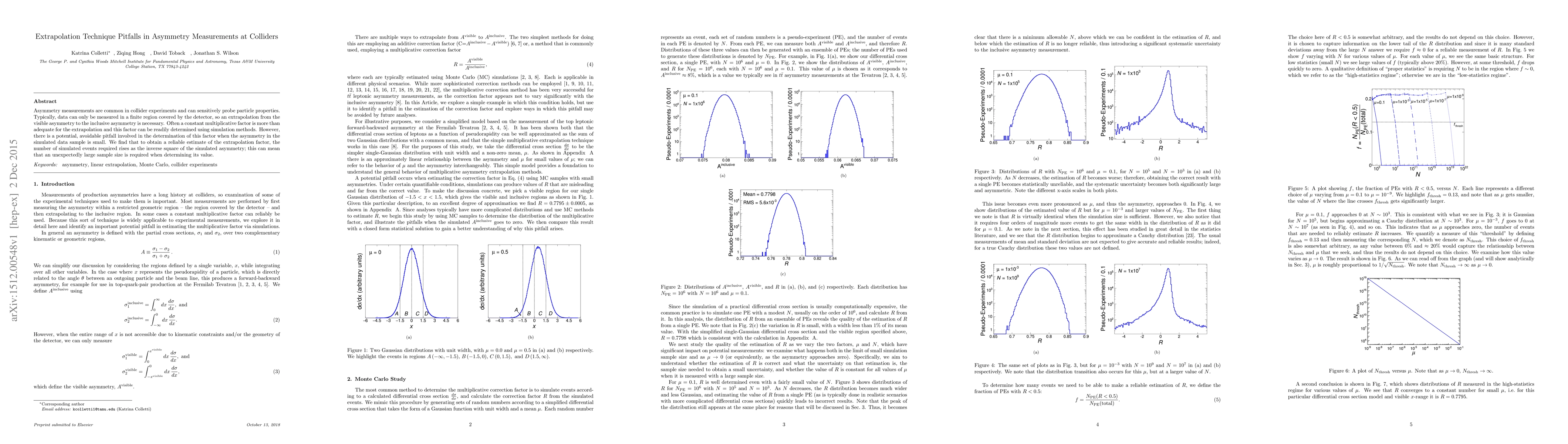 Asymmetry measurements are common in collider experiments and can sensitively probe particle properties. Typically, data can only be measured in a finite region covered by the detector, so an extrapolation from the visible asymmetry to the inclusive asymmetry is necessary. Often a constant multiplicative factor is more than adequate for the extrapolation and this factor can be readily determined using simulation methods. However, there is a potential, avoidable pitfall involved in the determination of this factor when the asymmetry in the simulated data sample is small. We find that to obtain a reliable estimate of the extrapolation factor, the number of simulated events required rises as the inverse square of the simulated asymmetry; this can mean that an unexpectedly large sample size is required when determining its value.