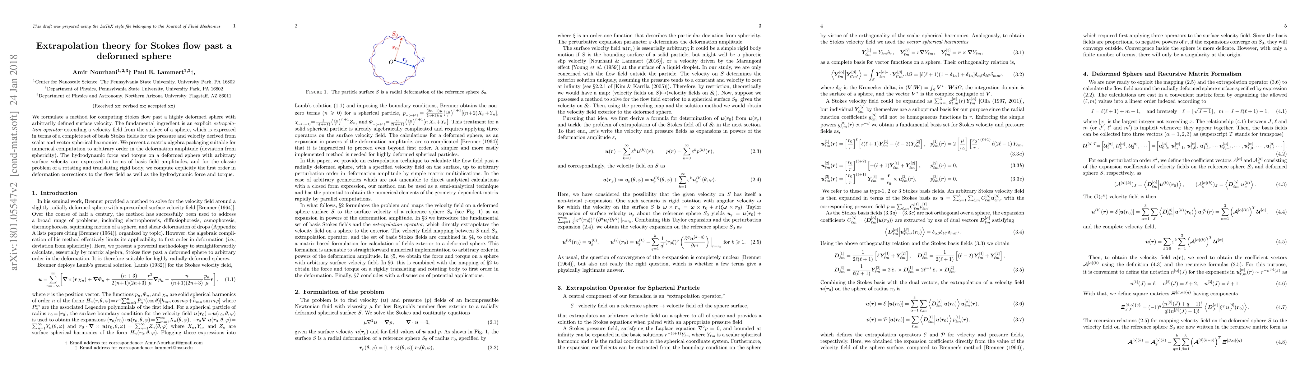 Researchers developed a method to compute fluid flow around deformed spheres with arbitrary surface velocity, using an extrapolation operator based on spherical harmonics, and applied it to the classic problem of a rotating and translating rigid body.