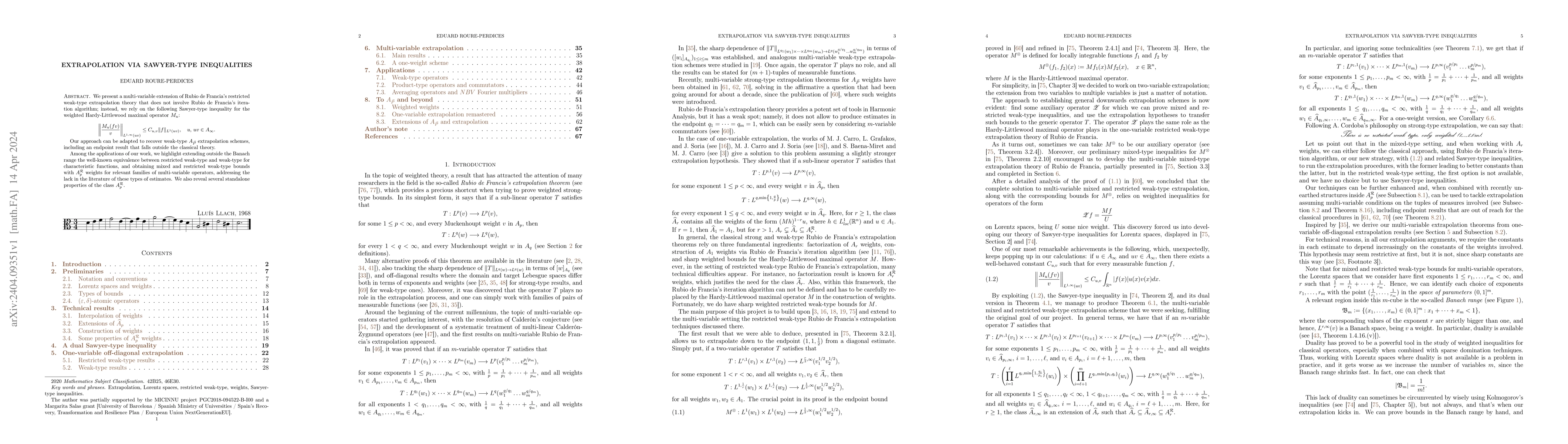 This paper extends Rubio de Francia's weak-type extrapolation theory using a Sawyer-type inequality for the weighted Hardy-Littlewood maximal operator, achieving results outside classical frameworks, including mixed and restricted weak-type bounds for multi-variable operators with $A_{p}^{\mathcal R}$ weights.