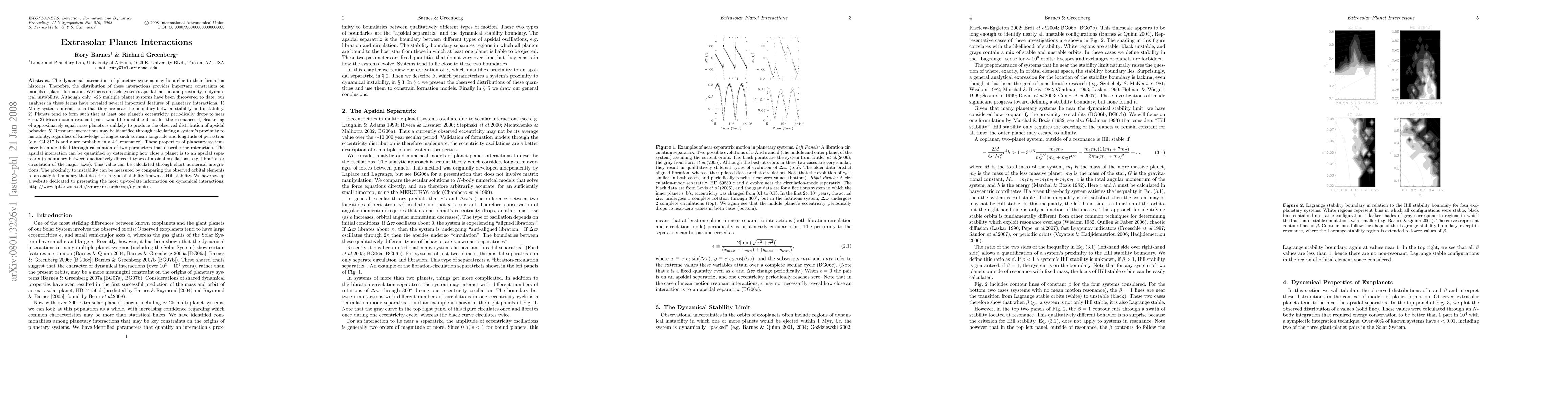 The dynamical interactions of planetary systems may be a clue to their formation histories. Therefore, the distribution of these interactions provides important constraints on models of planet formation. We focus on each system's apsidal motion and proximity to dynamical instability. Although only ~25 multiple planet systems have been discovered to date, our analyses in these terms have revealed several important features of planetary interactions. 1) Many systems interact such that they are near the boundary between stability and instability. 2) Planets tend to form such that at least one planet's eccentricity periodically drops to near zero. 3) Mean-motion resonant pairs would be unstable if not for the resonance. 4) Scattering of approximately equal mass planets is unlikely to produce the observed distribution of apsidal behavior. 5) Resonant interactions may be identified through calculating a system's proximity to instability, regardless of knowledge of angles such as mean longitude and longitude of periastron (e.g. GJ 317 b and c are probably in a 4:1 resonance). These properties of planetary systems have been identified through calculation of two parameters that describe the interaction. The apsidal interaction can be quantified by determining how close a planet is to an apsidal separatrix (a boundary between qualitatively different types of apsidal oscillations, e.g. libration or circulation of the major axes). The proximity to instability can be measured by comparing the observed orbital elements to an analytic boundary that describes a type of stability known as Hill stability. We have set up a website dedicated to presenting the most up-to-date information on dynamical interactions: http://www.lpl.arizona.edu/~rory/research/xsp/dynamics