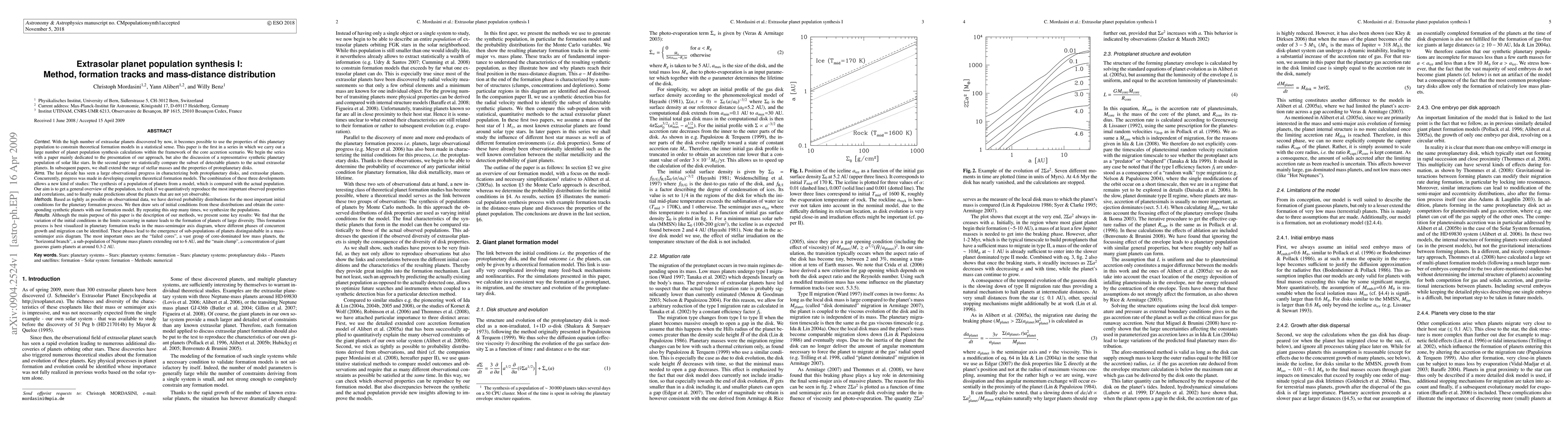 This paper introduces a method for synthesizing extrasolar planet populations based on observational data, aiming to constrain theoretical models. It presents a diverse range of synthetic planets formed through various growth and migration phases, resulting in distinct sub-populations like "failed cores," "horizontal branch," and "main clump" in a mass-distance distribution.