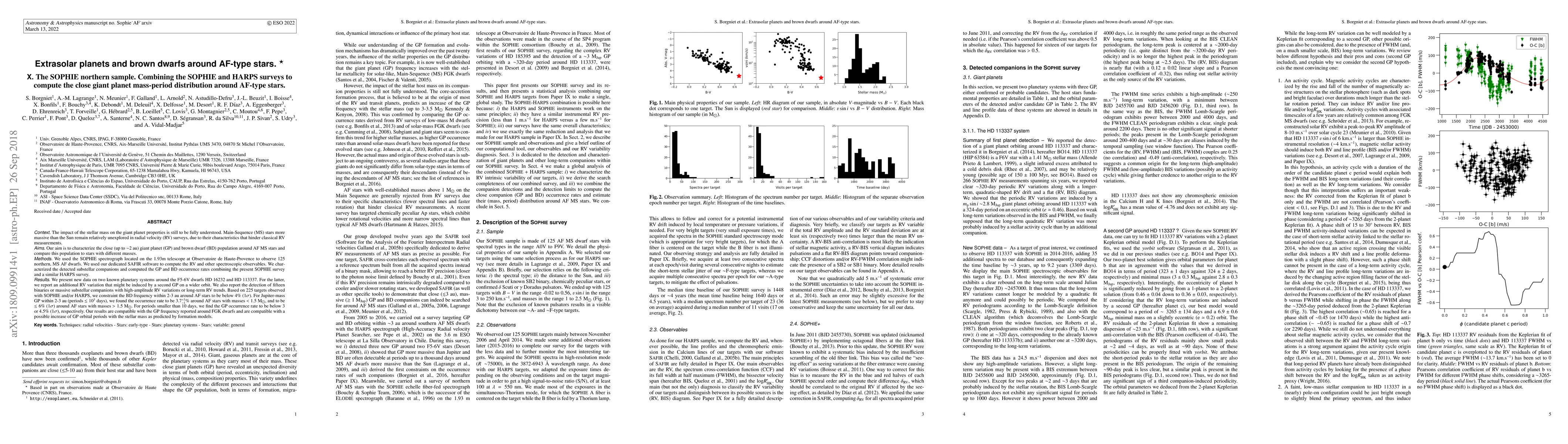 This study used the SOPHIE and HARPS telescopes to investigate the occurrence of giant planets and brown dwarfs around AF-type stars, finding that close-in giant planets are less common around more massive AF stars. The results suggest that planetary system properties may depend on stellar mass, aligning with formation models predicting longer orbital periods for planets around more massive stars.