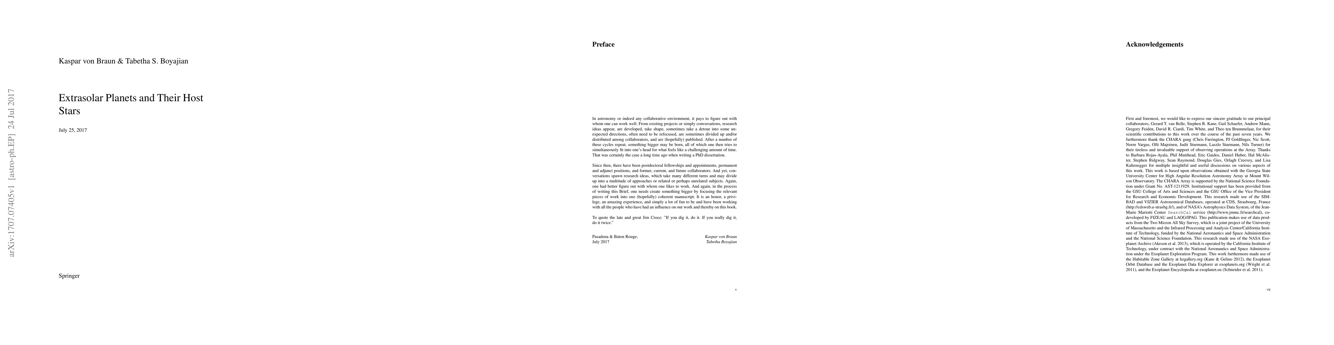 In order to understand the exoplanet, you need to understand its parent star. Astrophysical parameters of extrasolar planets are directly and indirectly dependent on the properties of their respective host stars. These host stars are very frequently the only visible component in the systems. This book describes our work in the field of characterization of exoplanet host stars using interferometry to determine angular diameters, trigonometric parallax to determine physical radii, and SED fitting to determine effective temperatures and luminosities. The interferometry data are based on our decade-long survey using the CHARA Array. We describe our methods and give an update on the status of the field, including a table with the astrophysical properties of all stars with high-precision interferometric diameters out to 150 pc (status Nov 2016). In addition, we elaborate in more detail on a number of particularly significant or important exoplanet systems, particularly with respect to (1) insights gained from transiting exoplanets, (2) the determination of system habitable zones, and (3) the discrepancy between directly determined and model-based stellar radii. Finally, we discuss current and future work including the calibration of semi-empirical methods based on interferometric data.
