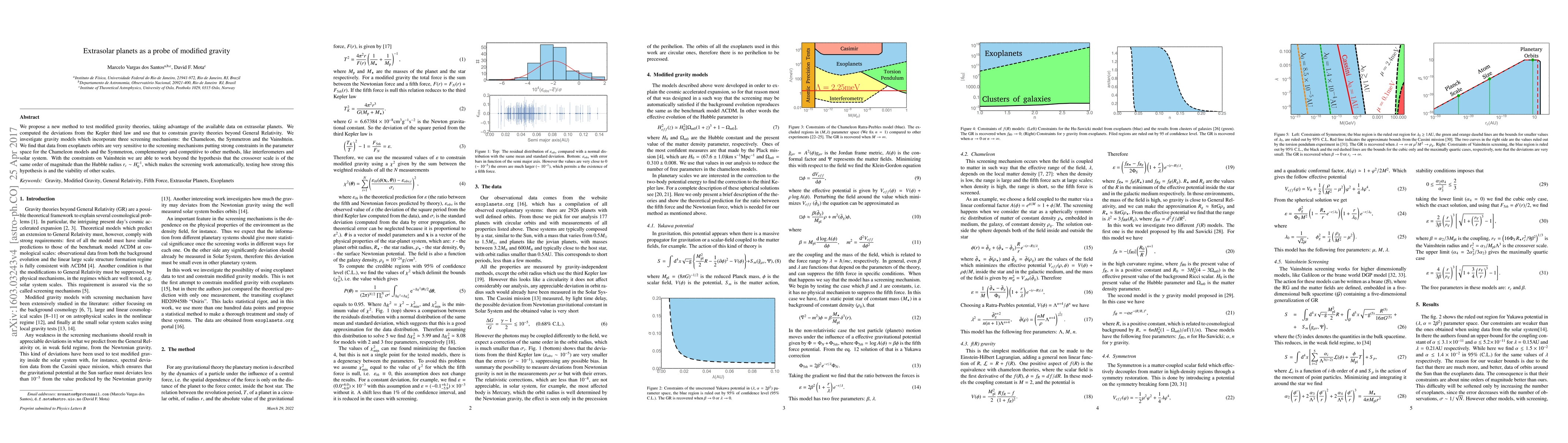 We propose a new method to test modified gravity theories, taking advantage of the available data on extrasolar planets. We computed the deviations from the Kepler third law and use that to constrain gravity theories beyond General Relativity. We investigate gravity models which incorporate three screening mechanisms: the Chameleon, the Symmetron and the Vainshtein. We find that data from exoplanets orbits are very sensitive to the screening mechanisms putting strong constraints in the parameter space for the Chameleon models and the Symmetron, complementary and competitive to other methods, like interferometers and solar system. With the constraints on Vainshtein we are able to work beyond the hypothesis that the crossover scale is of the same order of magnitude than the Hubble radius $r_c \sim H_0^{-1}$, which makes the screening work automatically, testing how strong this hypothesis is and the viability of other scales.