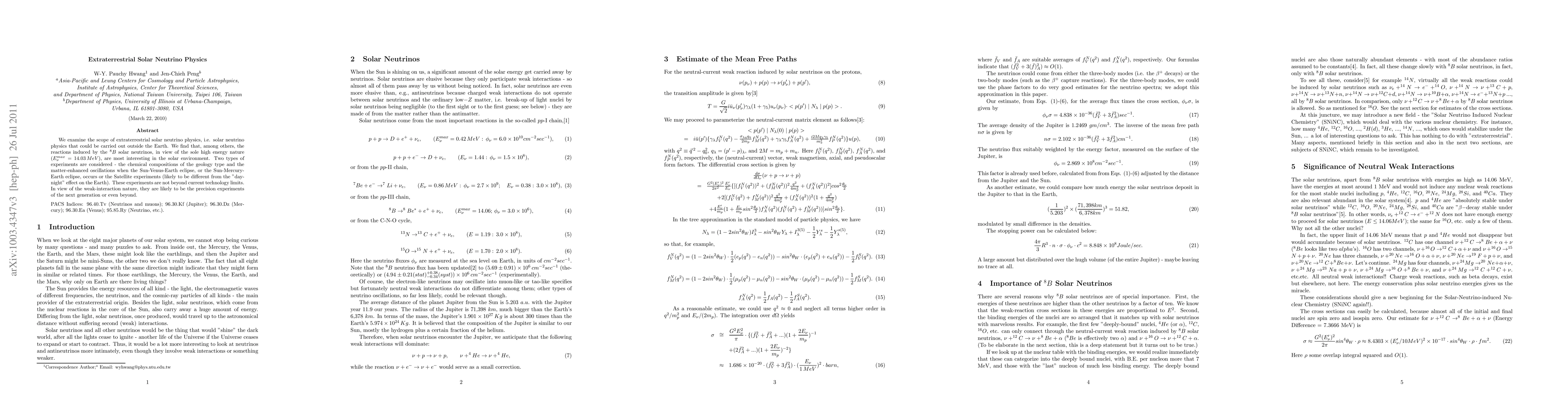 The paper proposes extraterrestrial solar neutrino physics (etSNP) as a means to investigate solar neutrino physics (SNP), focusing on matter-enhanced oscillations that occur primarily in the Sun's core. It suggests experiments involving satellites around Earth or Jupiter, observing solar eclipses like Sun-Venus-Earth or Sun-Mercury-Earth, and studying the chemical compositions of planets like Venus and Jupiter.
