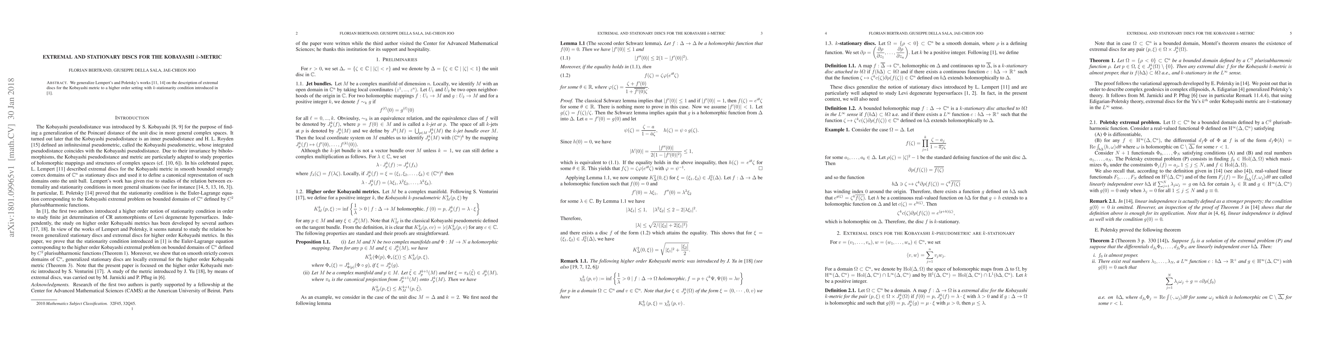 We generalize Lempert's and Poletsky's works on the description of extremal discs for the Kobayashi metric to a higher order setting.