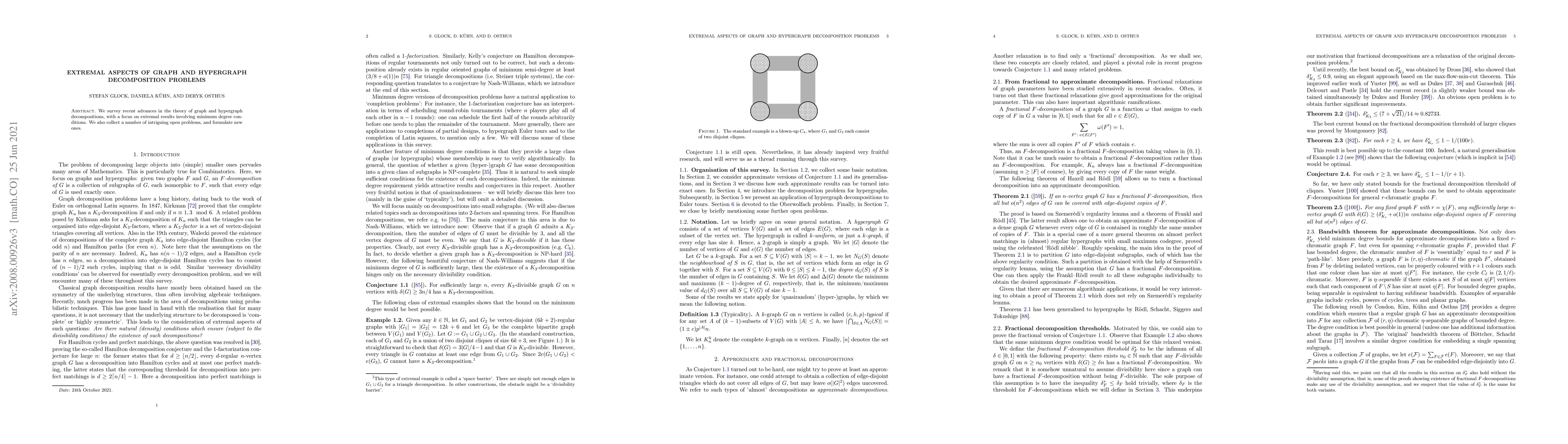 The paper presents novel extremal results and connections between graph decompositions, minimum degree conditions, and open problems in hypergraph theory.