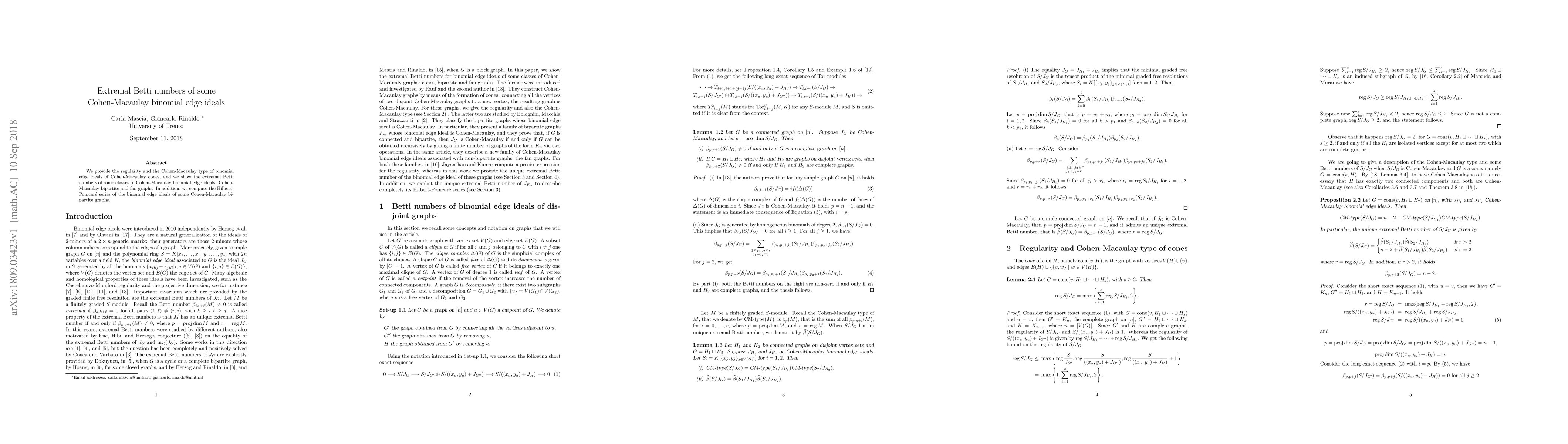 We provide the regularity and the Cohen-Macaulay type of binomial edge ideals of Cohen-Macaulay cones, and we show the extremal Betti numbers of some classes of Cohen-Macaulay binomial edge ideals: Cohen-Macaulay bipartite and fan graphs. In addition, we compute the Hilbert-Poincar\'e series of the binomial edge ideals of some Cohen-Macaulay bipartite graphs.