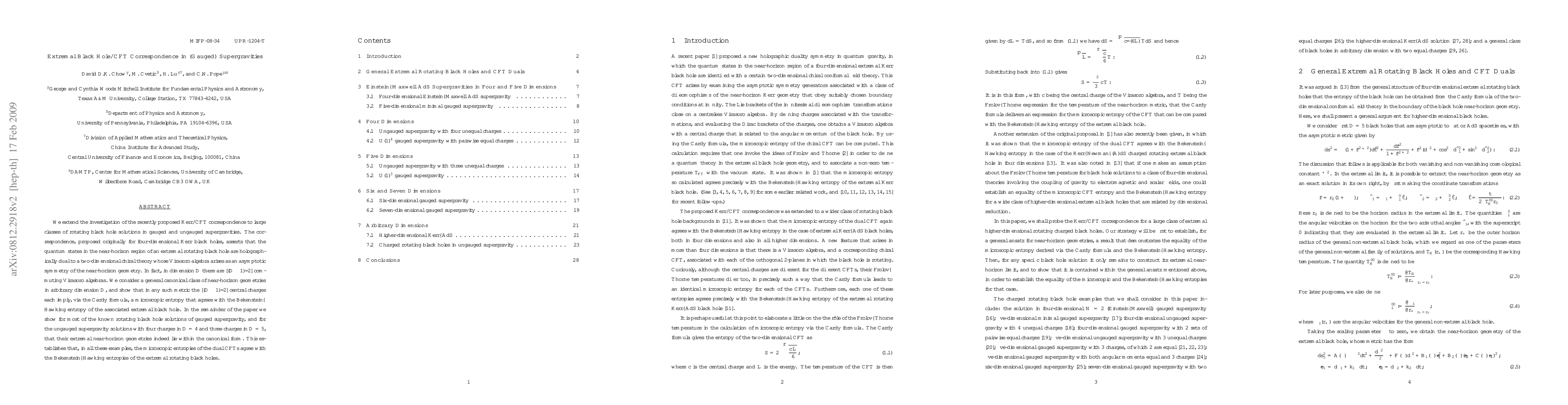 This paper extends the Kerr/CFT correspondence to various rotating black hole solutions in gauged and ungauged supergravities, demonstrating that the quantum states of extremal black holes' near-horizon regions are holographically dual to two-dimensional chiral theories. It confirms that the microscopic entropy from these dual conformal field theories matches the Bekenstein-Hawking entropy of the corresponding black holes.