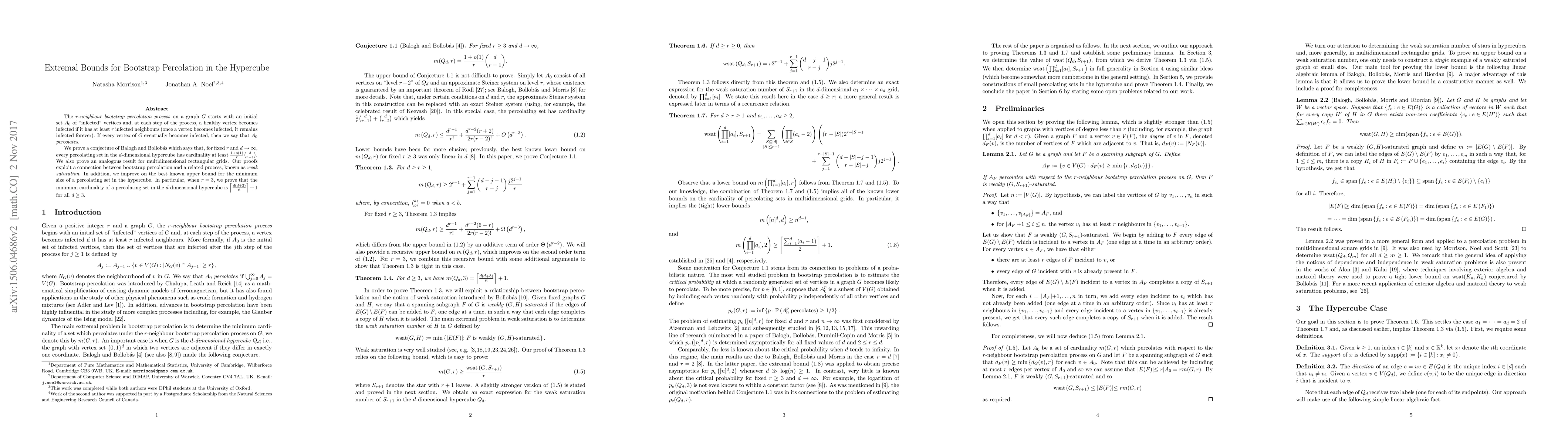 This paper proves a conjecture regarding extremal bounds for $r$-neighbour bootstrap percolation in the $d$-dimensional hypercube, showing that every percolating set has a size of at least $\frac{1+o(1)}{r}\binom{d}{r-1}$ as $d$ tends to infinity. It also improves the upper bound for the minimum size of a percolating set in the hypercube.