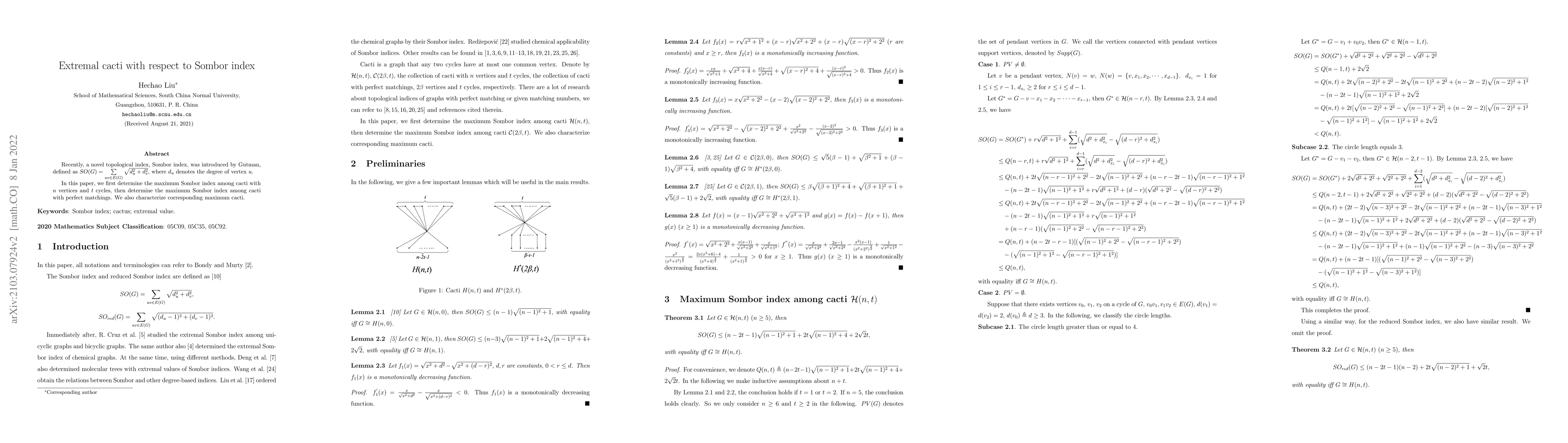 This paper investigates the maximum Sombor index for cacti with varying numbers of vertices and cycles, and for those with perfect matchings, determining the extremal structures that achieve these indices. The characterization of these optimal cacti is also provided.