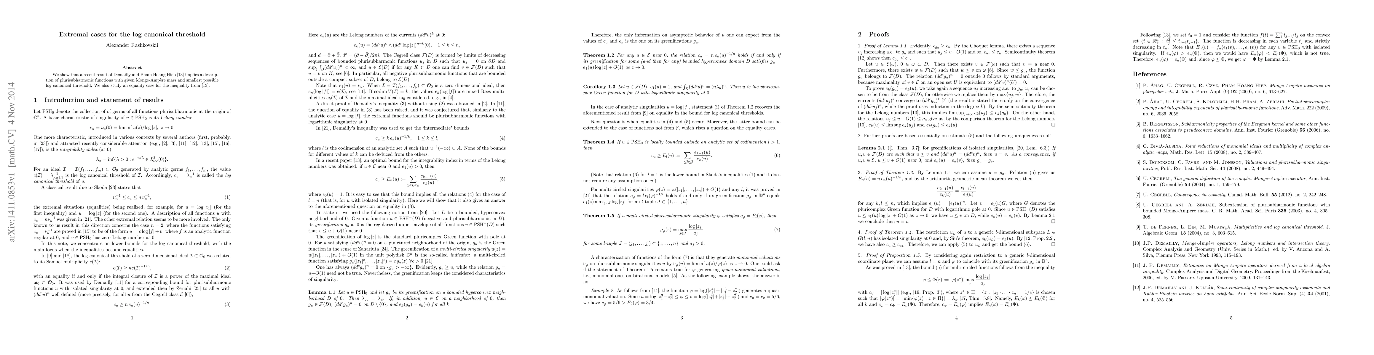 We show that a recent result of Demailly and Pham Hoang Hiep \cite{DH} implies a description of plurisubharmonic functions with given Monge-Amp\`ere mass and smallest possible log canonical threshold. We also study an equality case for the inequality from \cite{DH}.