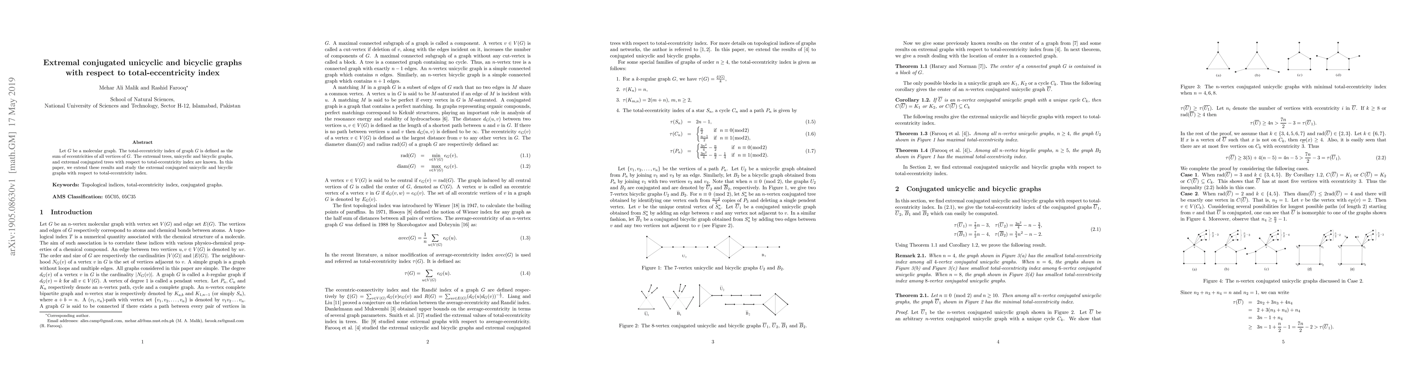 This paper extends prior work on extremal molecular graphs, focusing on conjugated unicyclic and bicyclic graphs to determine which ones maximize the total-eccentricity index. The authors build on previous studies to provide new insights into these graph structures.
