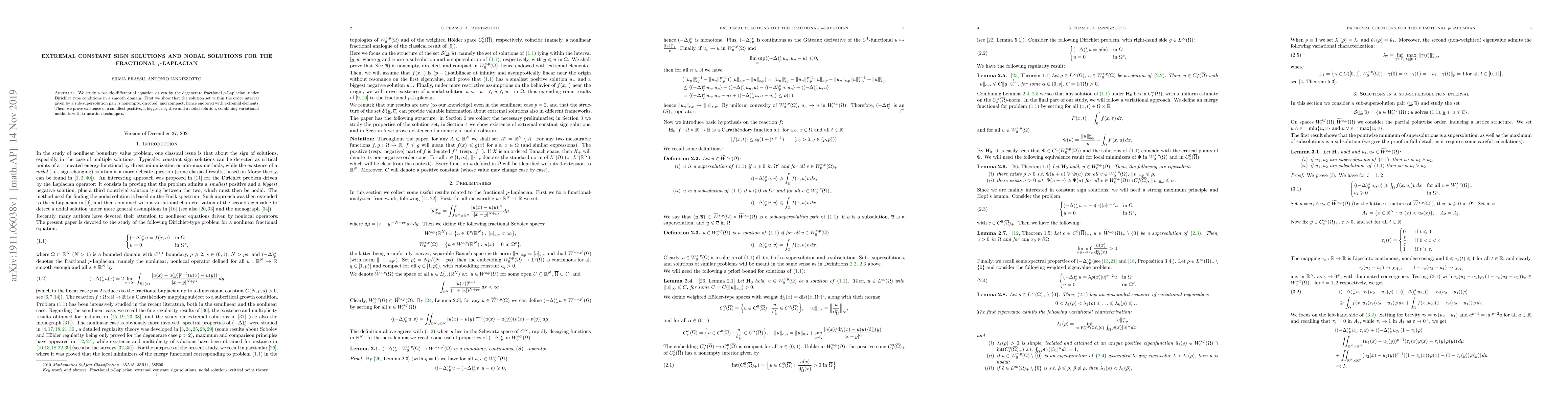 We study a pseudo-differential equation driven by the degenerate fractional p-Laplacian, under Dirichlet type conditions in a smooth domain. First we show that the solution set within the order interval given by a sub-supersolution pair is nonempty, directed, and compact, hence endowed with extremal elements. Then, we prove existence of a smallest positive, a biggest negative and a nodal solution, combining variational methods with truncation techniques.