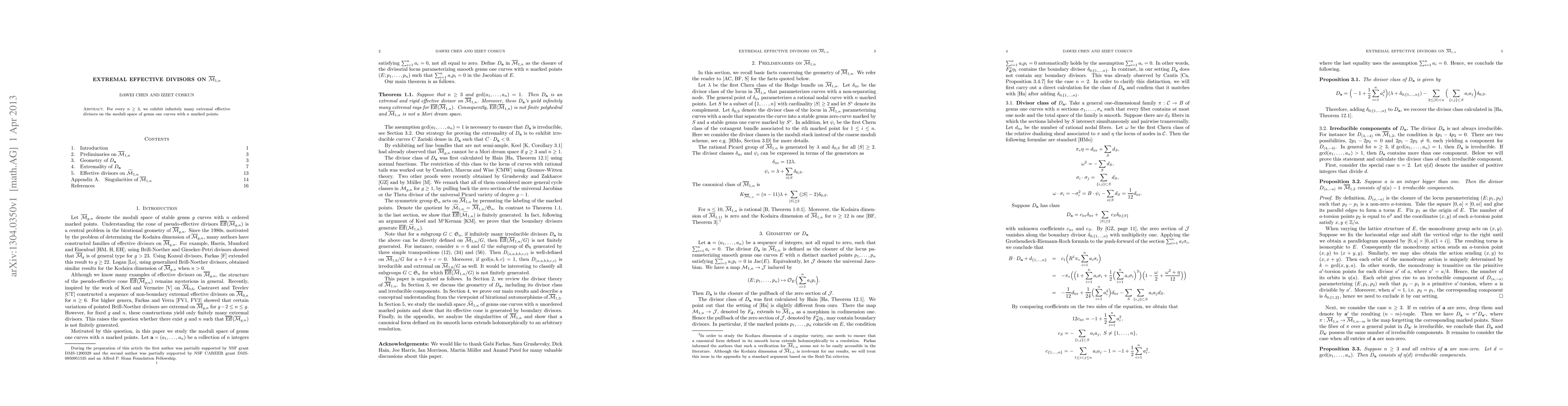 Summary: The research presents a demonstration of infinitely many extremal effective divisors on the moduli space of genus one curves with at least three marked points for every $n \geq 3$. These divisors play a significant role in understanding the geometry of the moduli space.