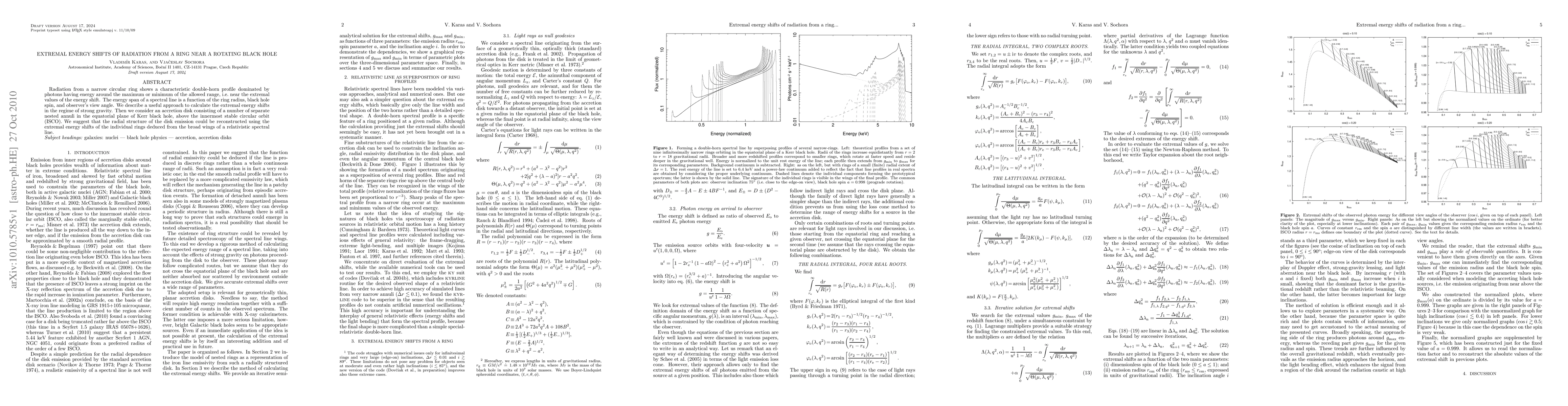 Radiation from a narrow circular ring shows a characteristic double-horn profile dominated by photons having energy around the maximum or minimum of the allowed range, i.e. near the extremal values of the energy shift. The energy span of a spectral line is a function of the ring radius, black hole spin, and observer's view angle. We describe a useful approach to calculate the extremal energy shifts in the regime of strong gravity. Then we consider an accretion disk consisting of a number of separate nested annuli in the equatorial plane of Kerr black hole, above the innermost stable circular orbit (ISCO). We suggest that the radial structure of the disk emission could be reconstructed using the extremal energy shifts of the individual rings deduced from the broad wings of a relativistic spectral line.