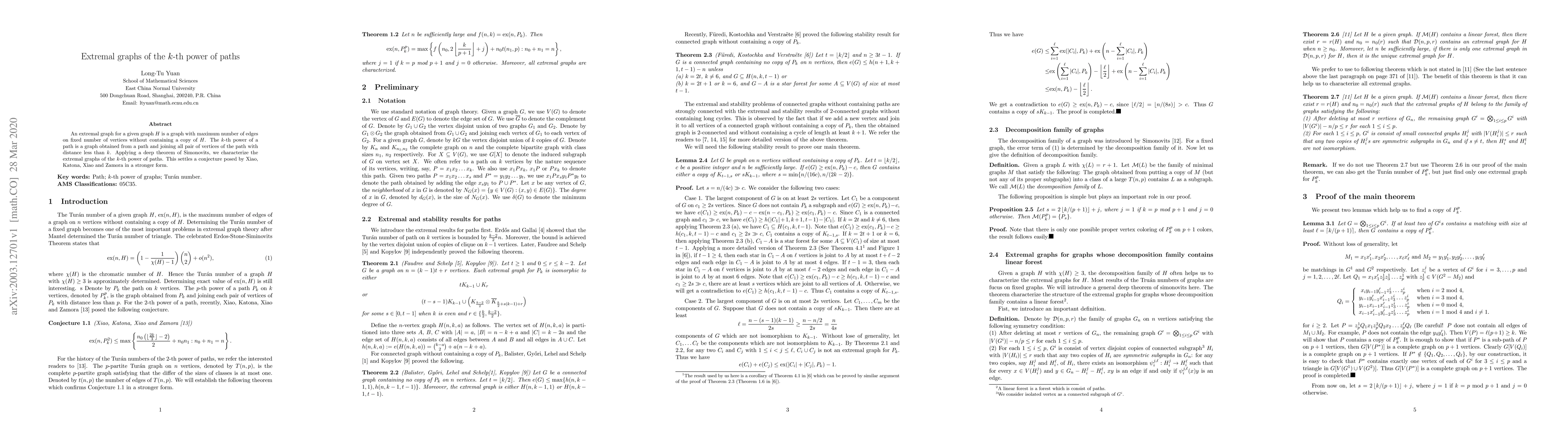 This research paper characterizes the extremal graphs of the k-th power of paths, settling a conjecture in a stronger form using Simonovits' theorem. It finds the maximum number of edges on fixed vertices without containing a specific graph.