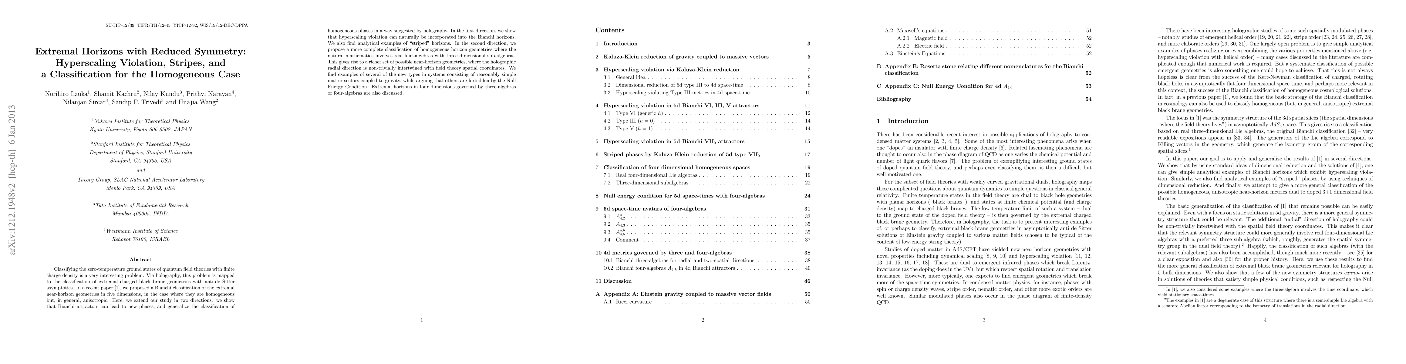 This paper classifies zero-temperature ground states of quantum field theories with finite charge density via holography, focusing on homogeneous but anisotropic extremal black brane geometries. It extends previous work by incorporating hyperscaling violation and "striped" horizons, and proposes a new classification of homogeneous horizon geometries based on real four-algebras, revealing a richer set of possible near-horizon geometries.
