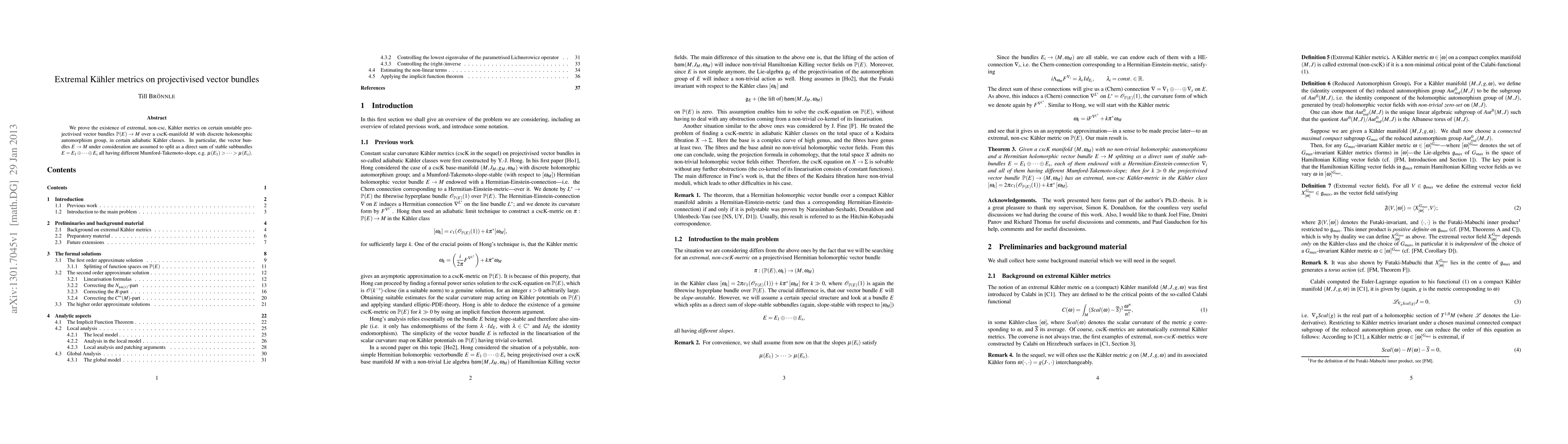 Summary: The paper establishes the existence of non-constant scalar curvature (non-csc) extremal Kähler metrics on projectivised vector bundles over Calabi-Yau manifolds, where the bundles split into stable subbundles with distinct slopes, and the manifold has a discrete group of holomorphic automorphisms. These metrics lie in specific adiabatic Kähler classes.