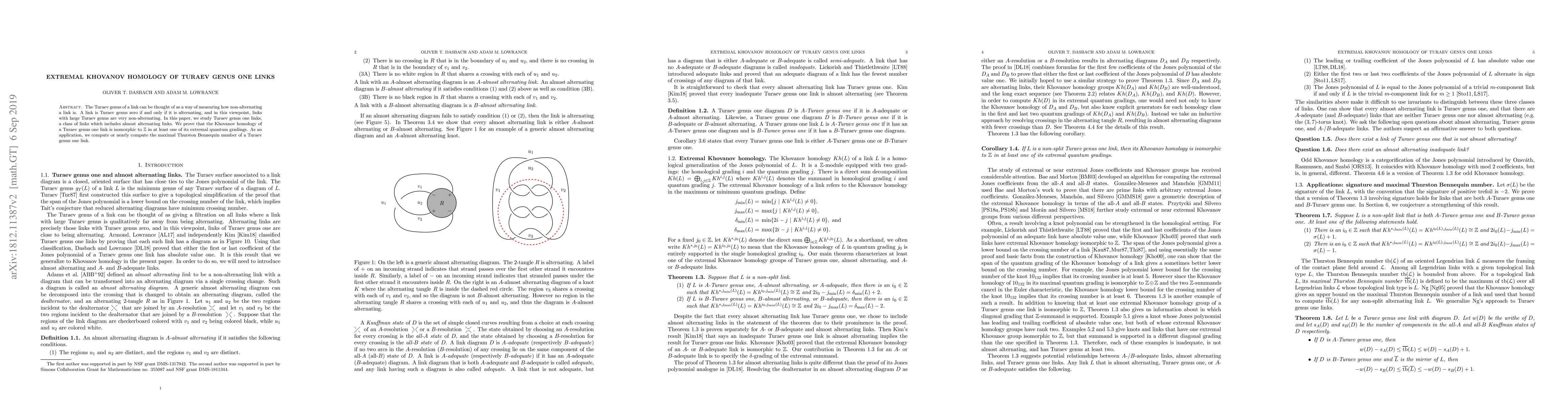 The Turaev genus of a link can be thought of as a way of measuring how non-alternating a link is. A link is Turaev genus zero if and only if it is alternating, and in this viewpoint, links with large Turaev genus are very non-alternating. In this paper, we study Turaev genus one links, a class of links which includes almost alternating links. We prove that the Khovanov homology of a Turaev genus one link is isomorphic to $\mathbb{Z}$ in at least one of its extremal quantum gradings. As an application, we compute or nearly compute the maximal Thurston Bennequin number of a Turaev genus one link.