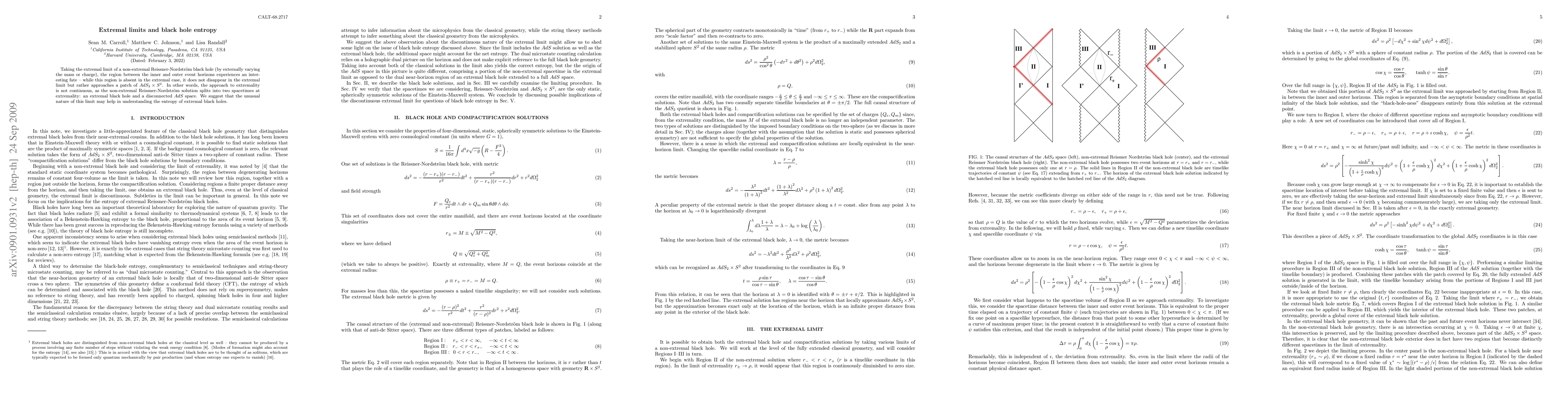 This paper explores the behavior of the region between the event horizons of a Reissner-Nordström black hole when it approaches extremality. It finds that this region transitions into a separate $AdS_2 \times S^2$ space, suggesting a non-continuous approach to extremality, which may provide insights into the entropy of extremal black holes.